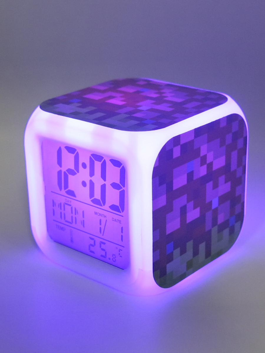 Часы-будильник Майнкрафт Блок земли пиксельные с подсветкой