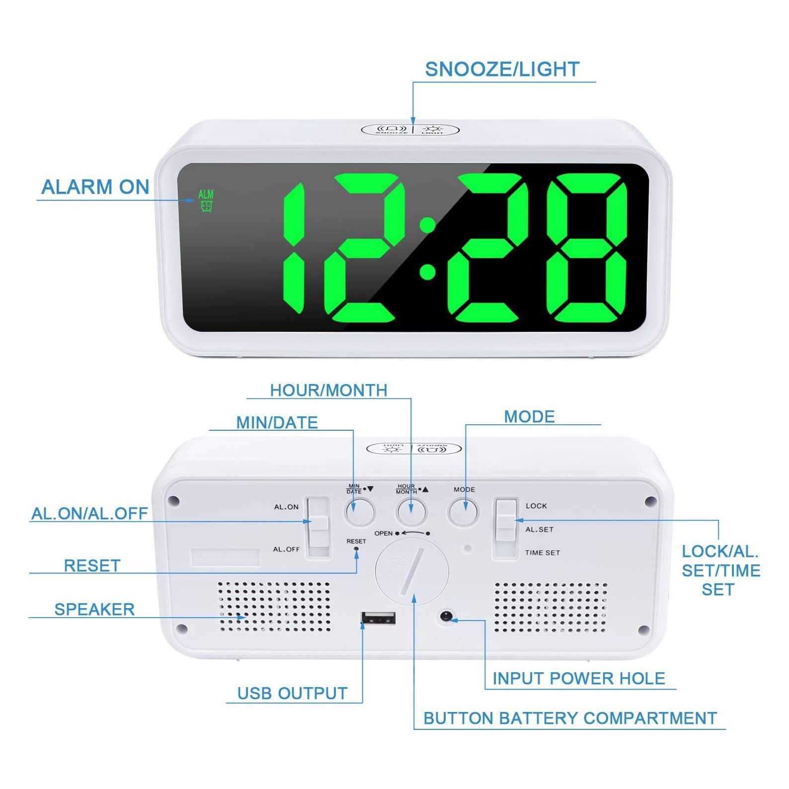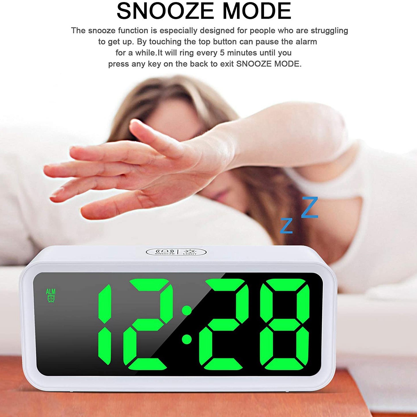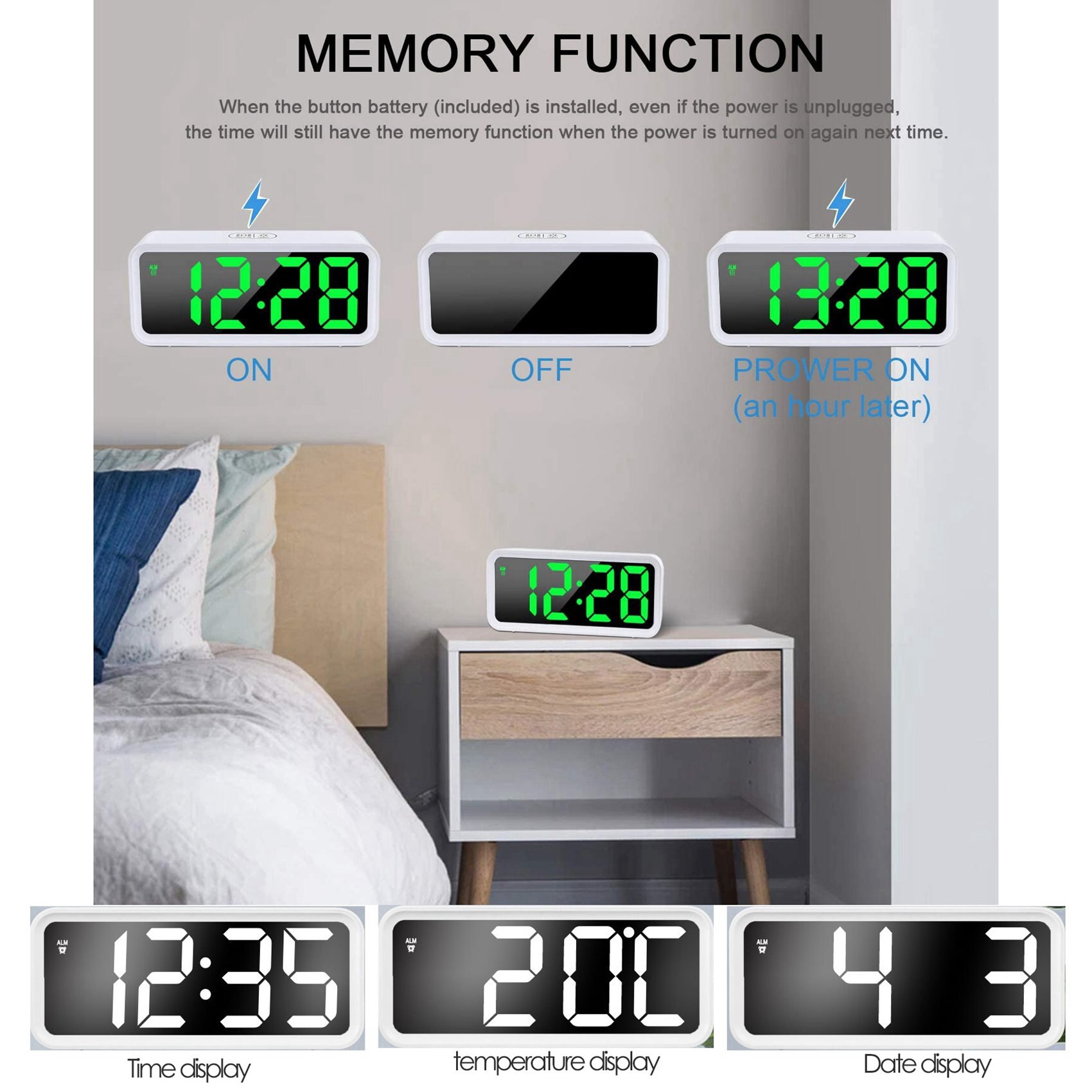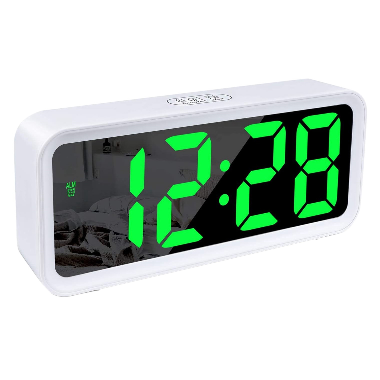 Цифровой зеркальный будильник, Настольные светодиодные часы с большим ЖК-дисплеем, белый цвет