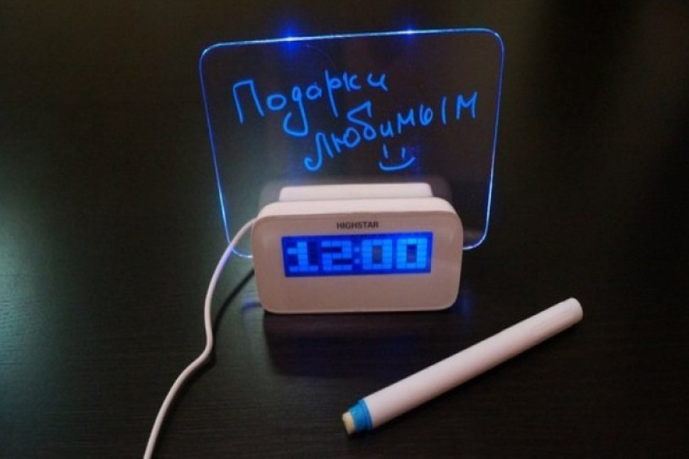 RBull Светящийся LED-будильник с доской для записей (Синий)