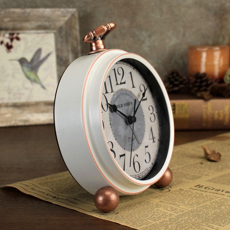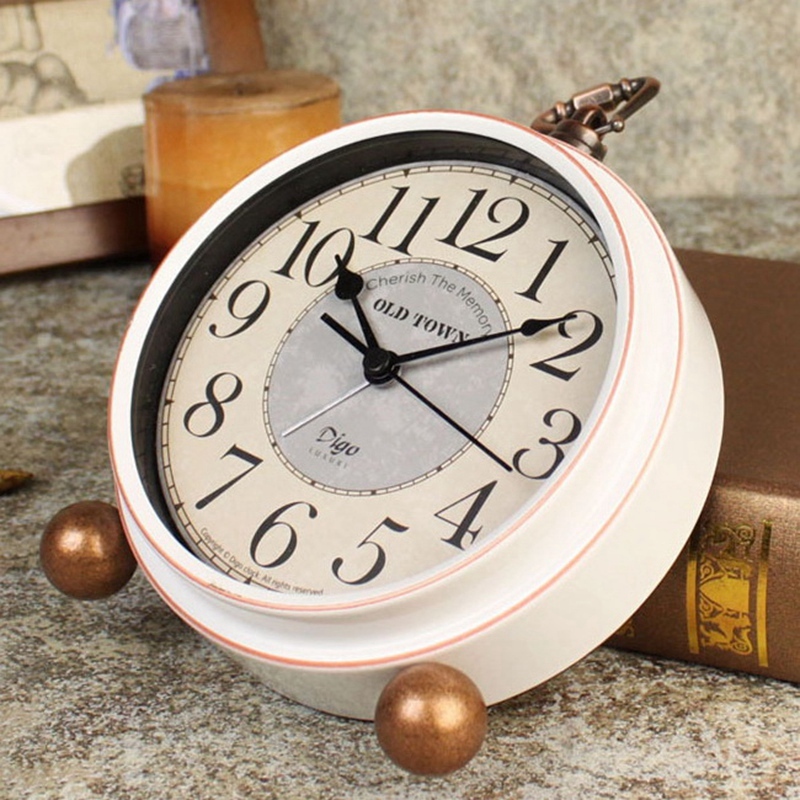 Бесшумные настольные металлические настольные кварцевые цифровые часы на батарейках, белые-A