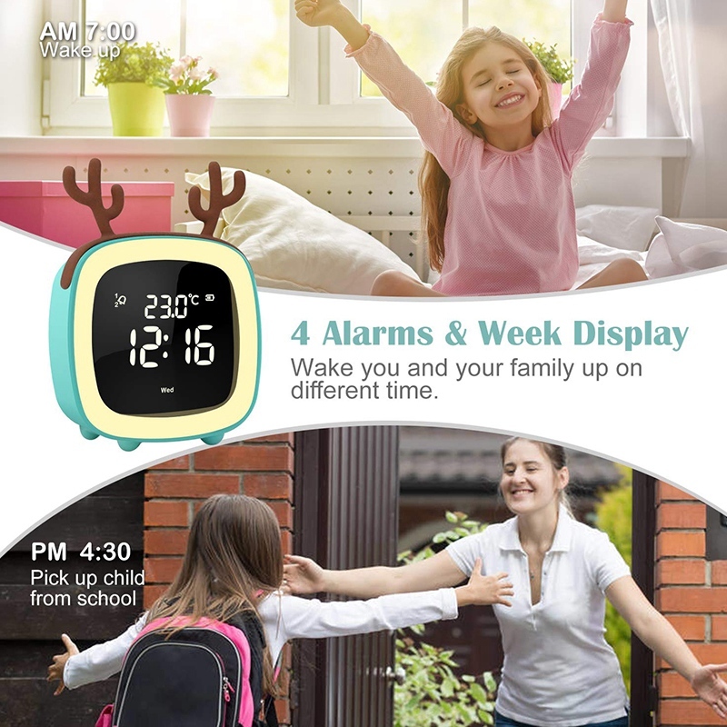 Симпатичный цифровой будильник для детей, женщин, ночник для малышей (синий)