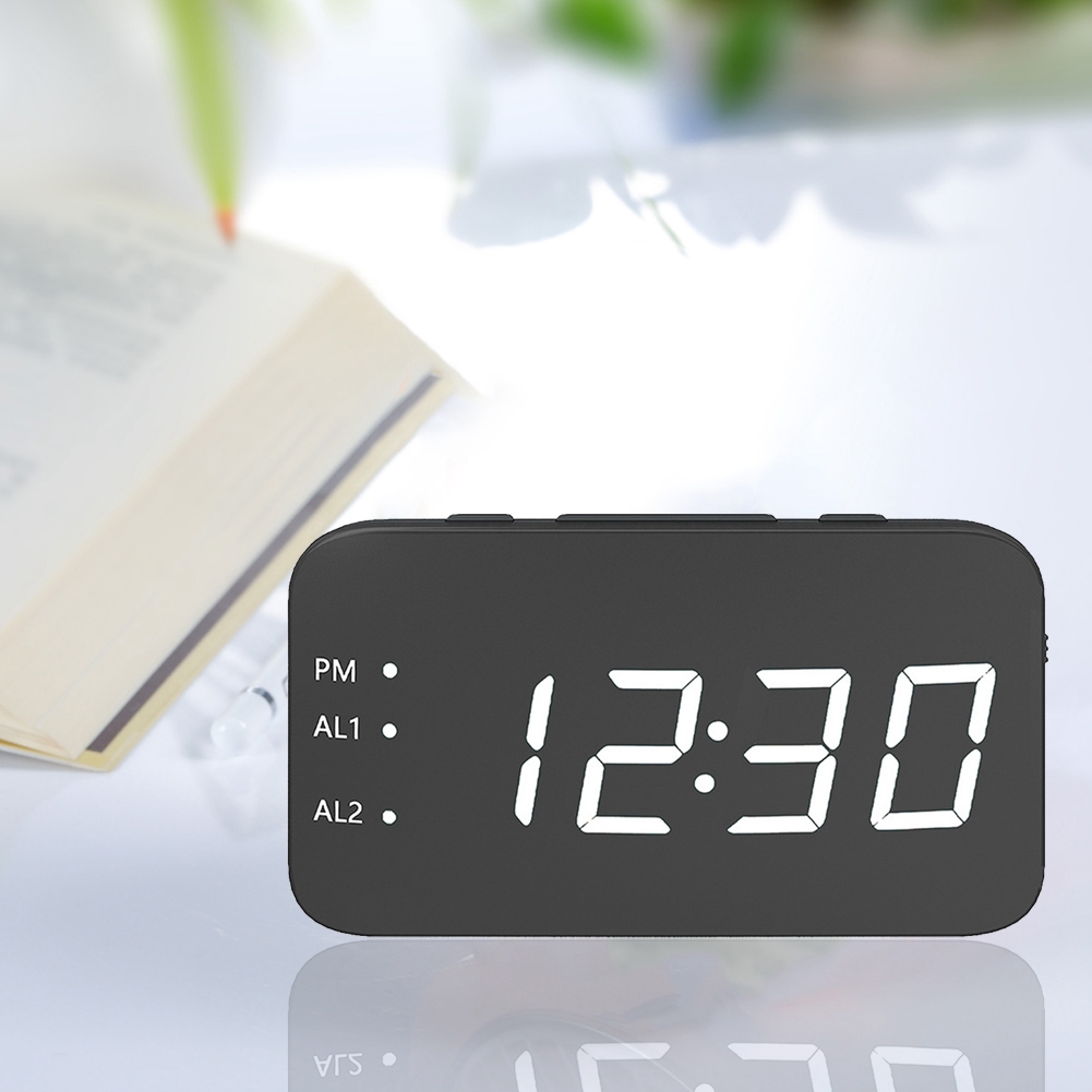 LED Зеркало Цифровой Будильник Температурный Дисплей Черный