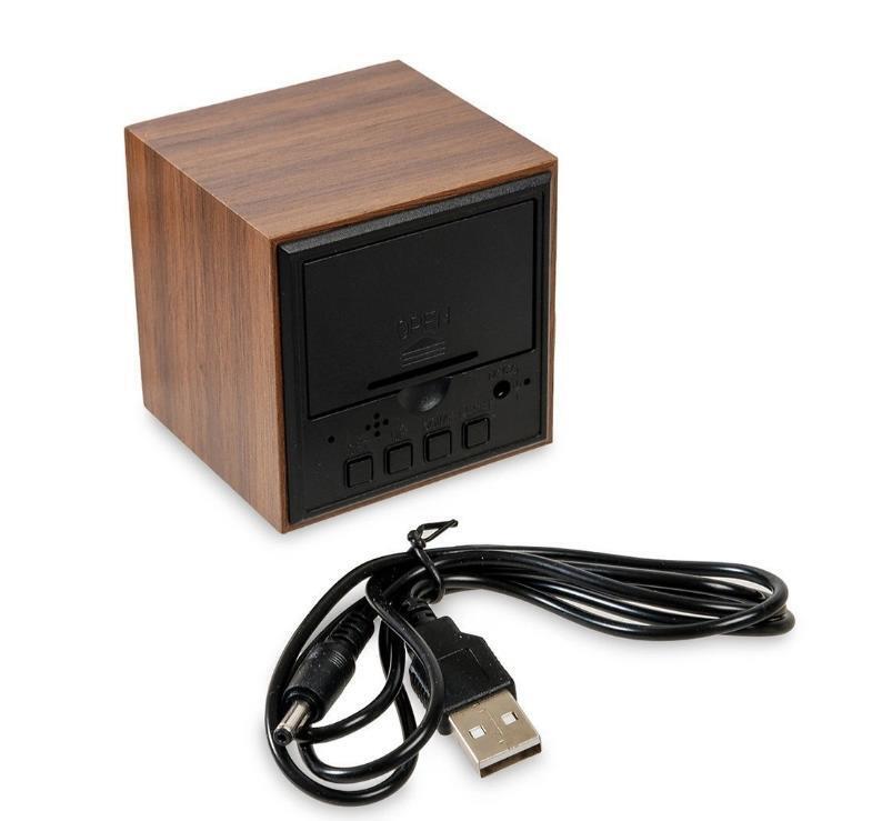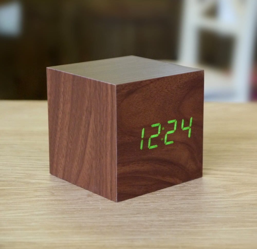 Деревянные часы кубик Для Вас коричневые с зелёным дисплеем