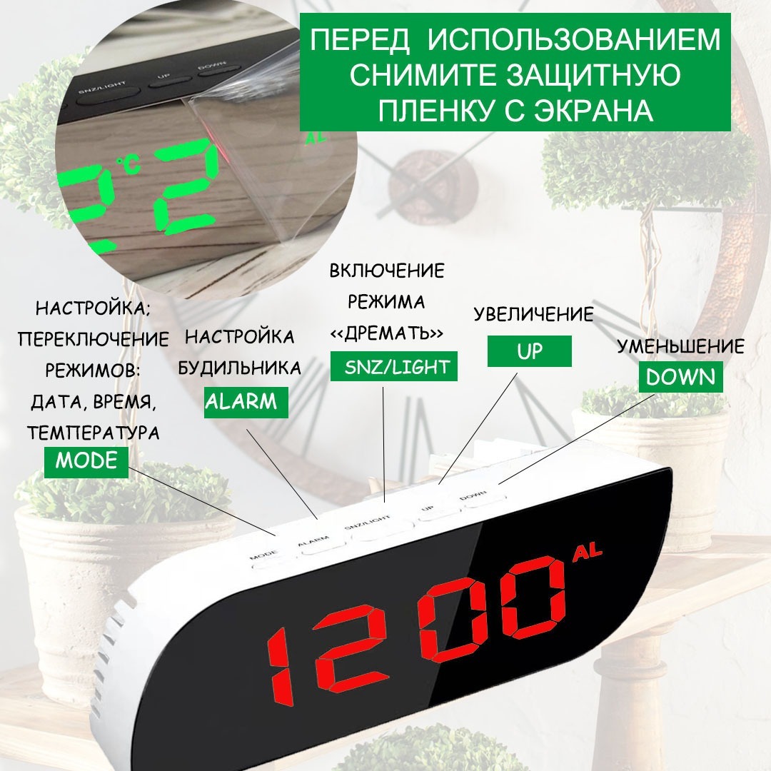 Часы настольные электронные с будильником, зеленая подсветка DS-3618L