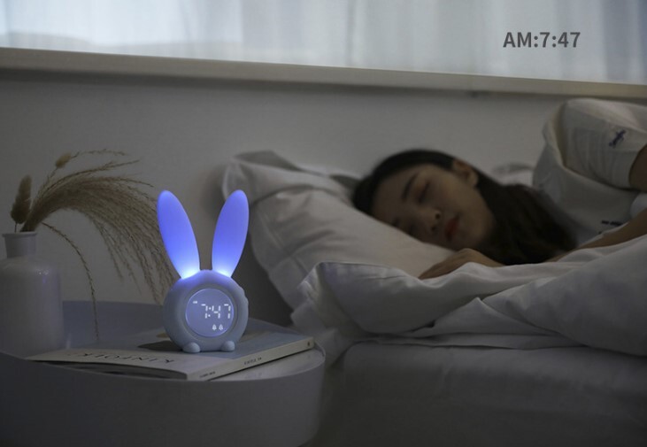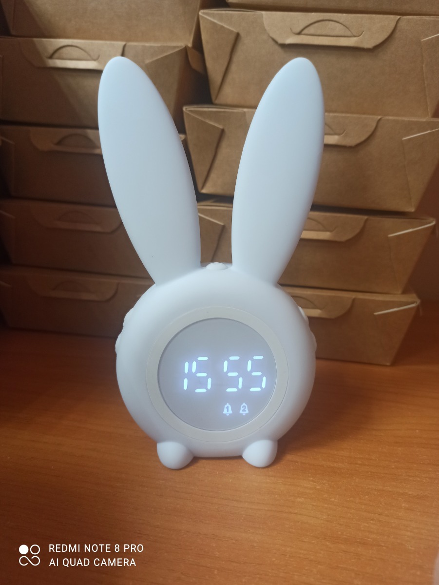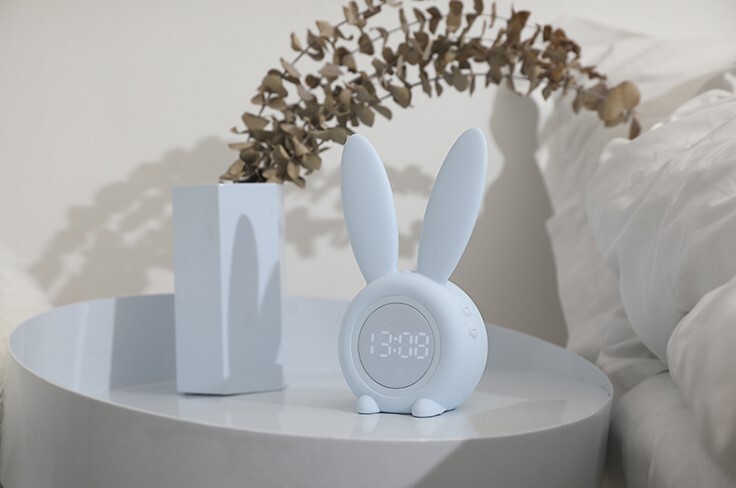 Электронные часы-будильник с подсветкой "Зайчик", детский будильник-ночник, голубой