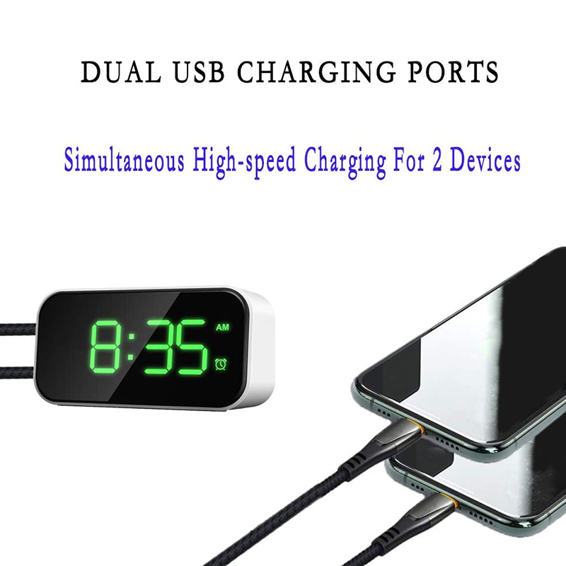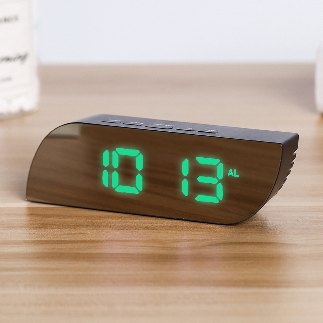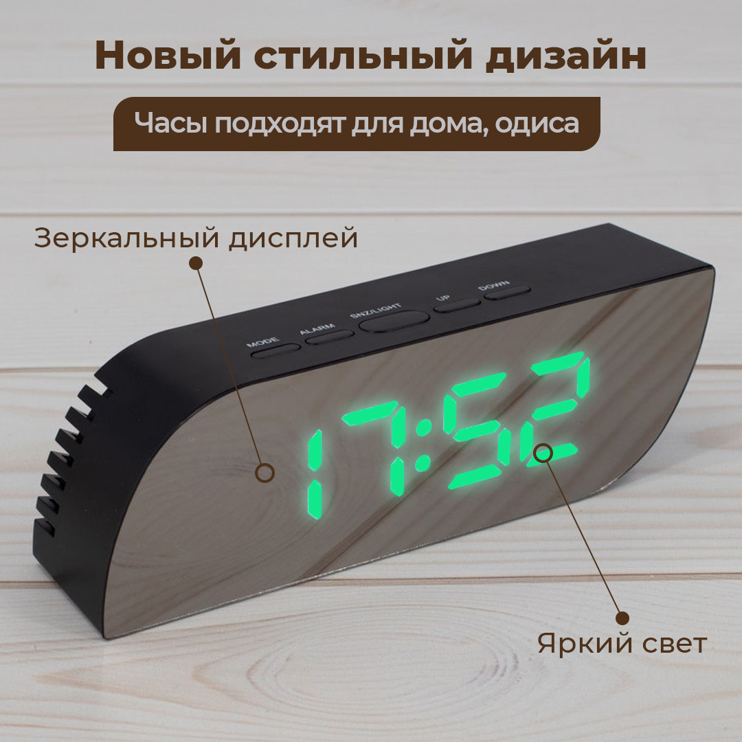 Цифровой будильник с большим светодиодным дисплеем времени, черный и зеленый