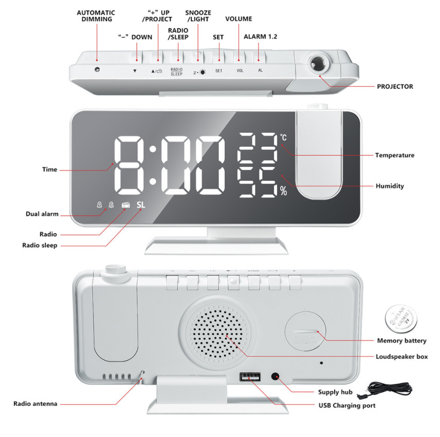 FM-радио светодиодный цифровой будильник