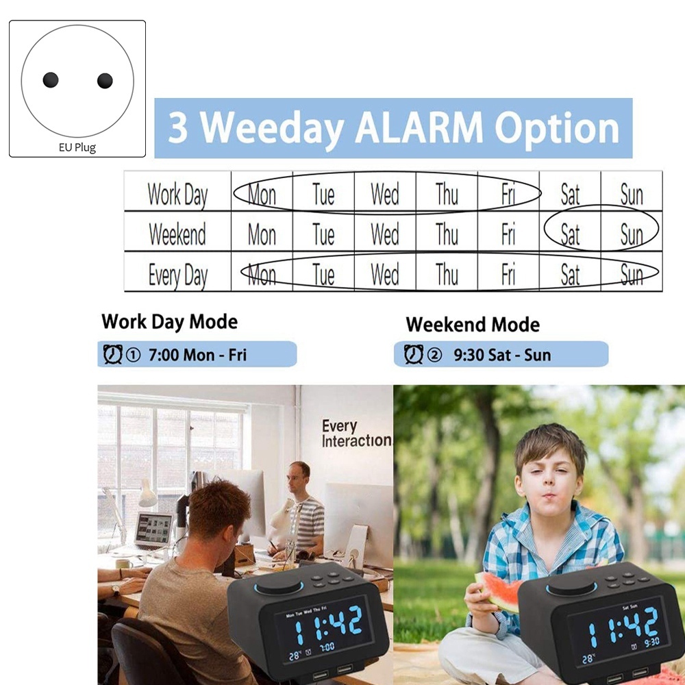 Smart Mute Многофункциональный черный электронный светодиодный будильник-EU Plug