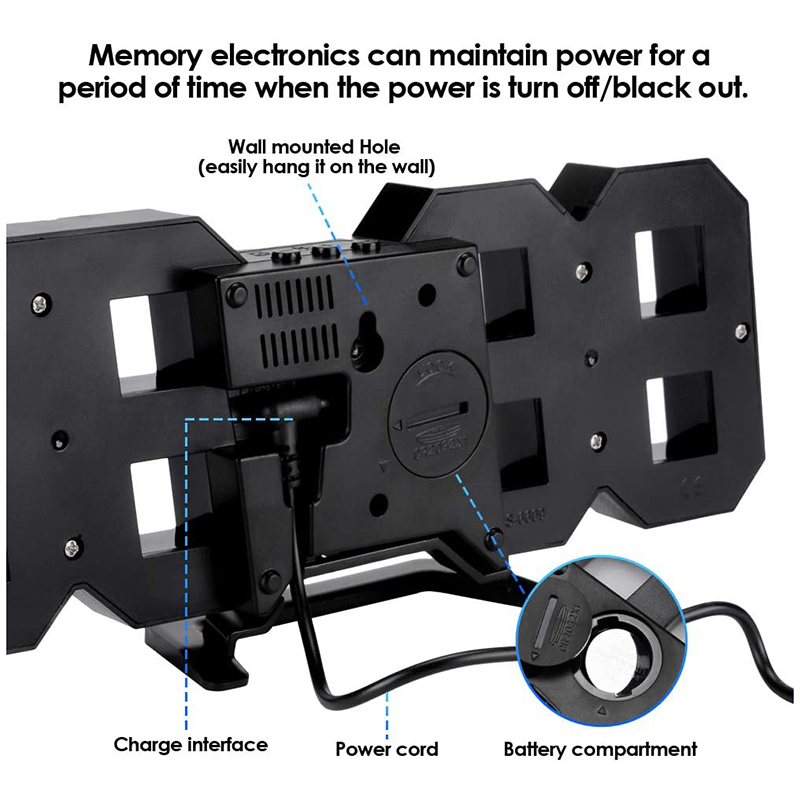 Цифровые настенные электронные часы 3D с функцией повтора, черно-синие