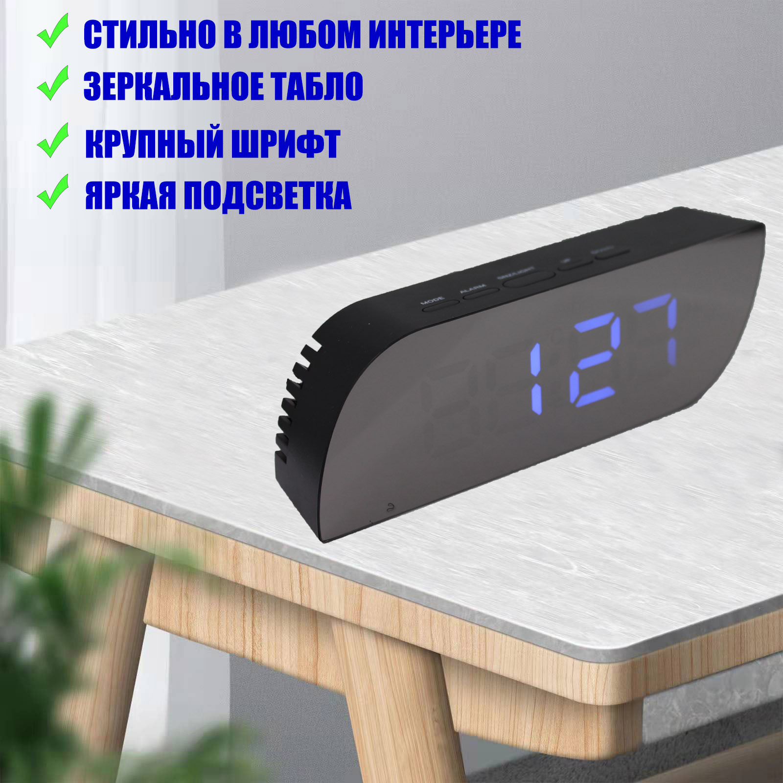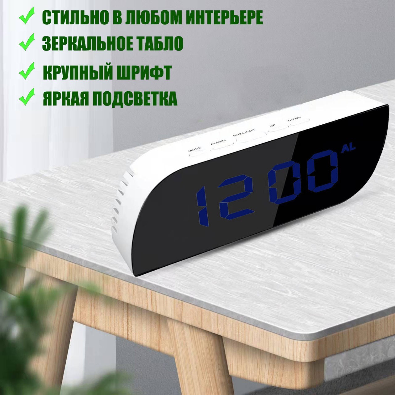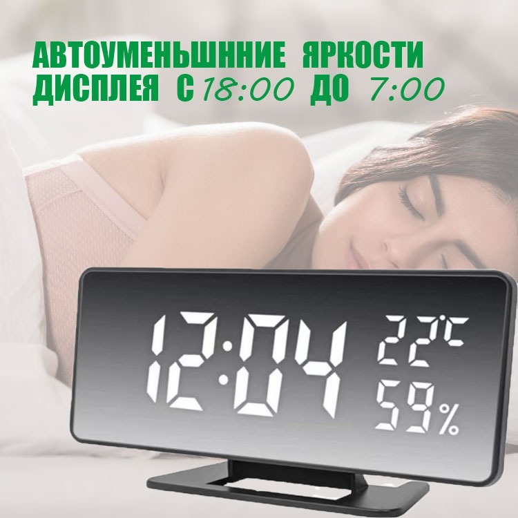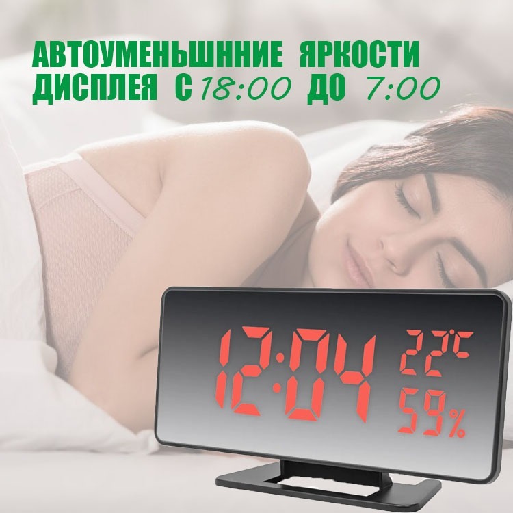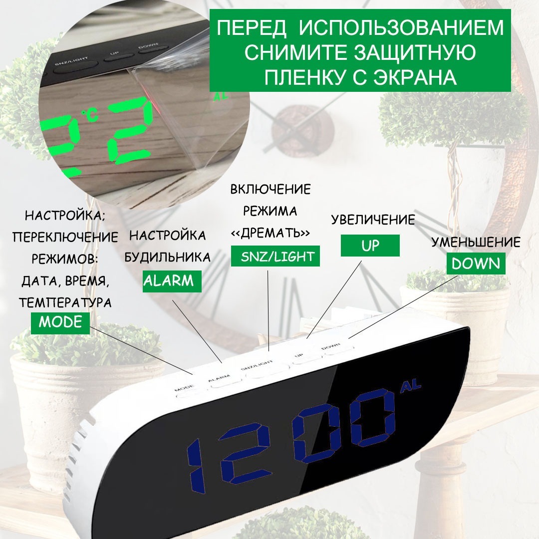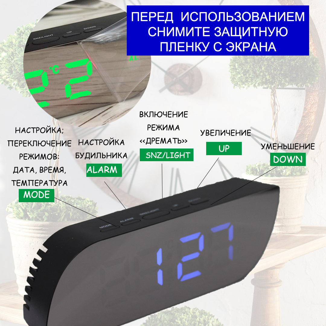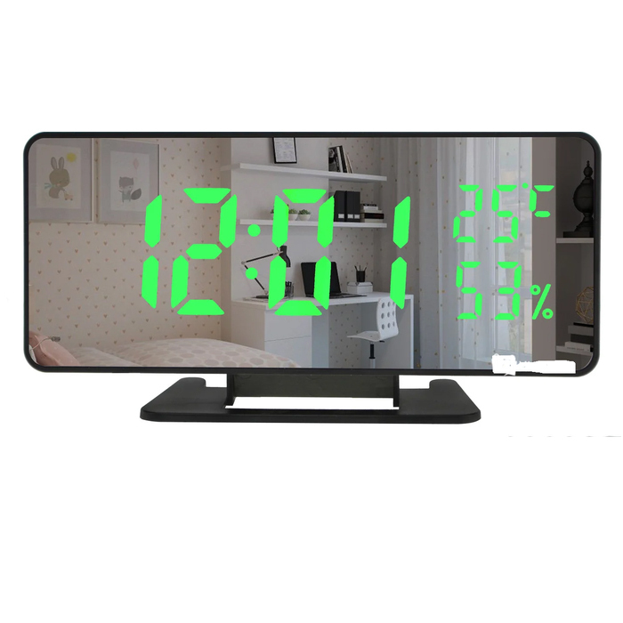 Часы будильник электронные настольные зеркальные, дисплей зеленый