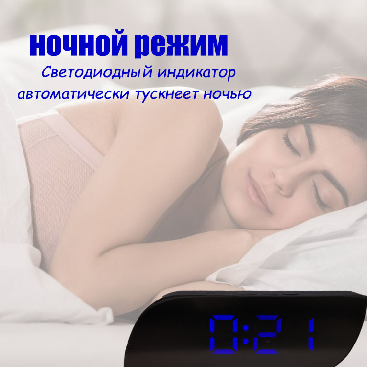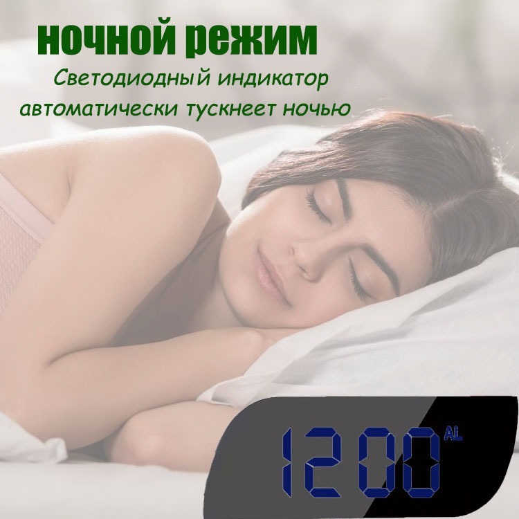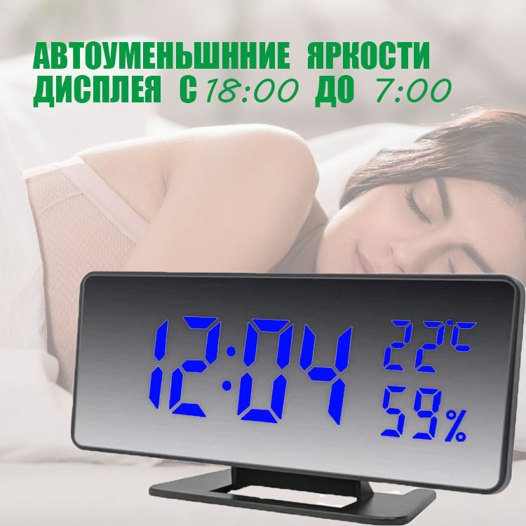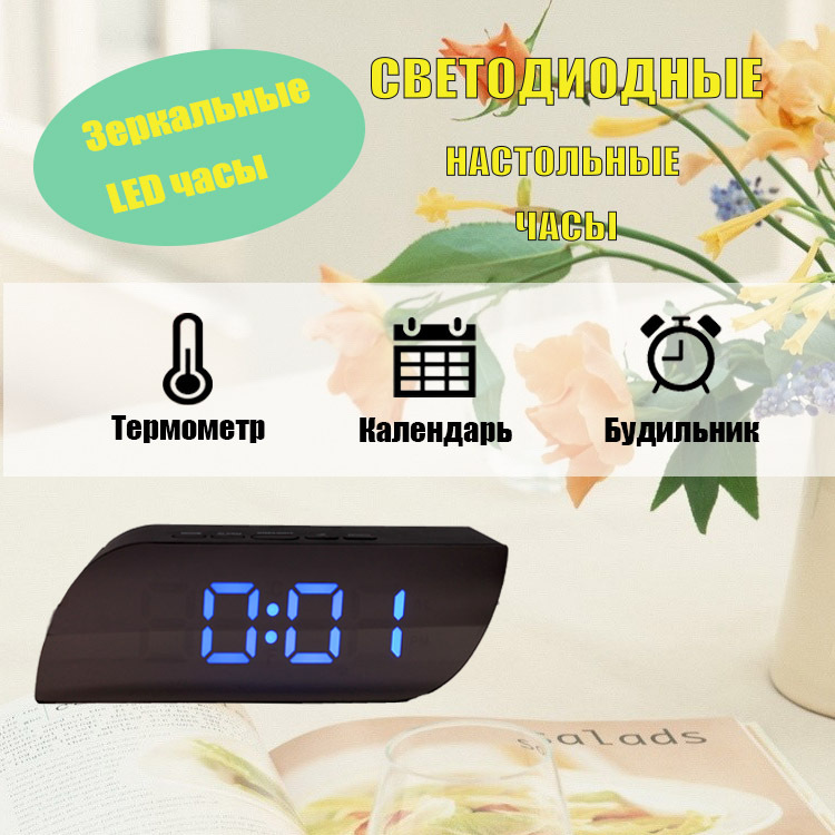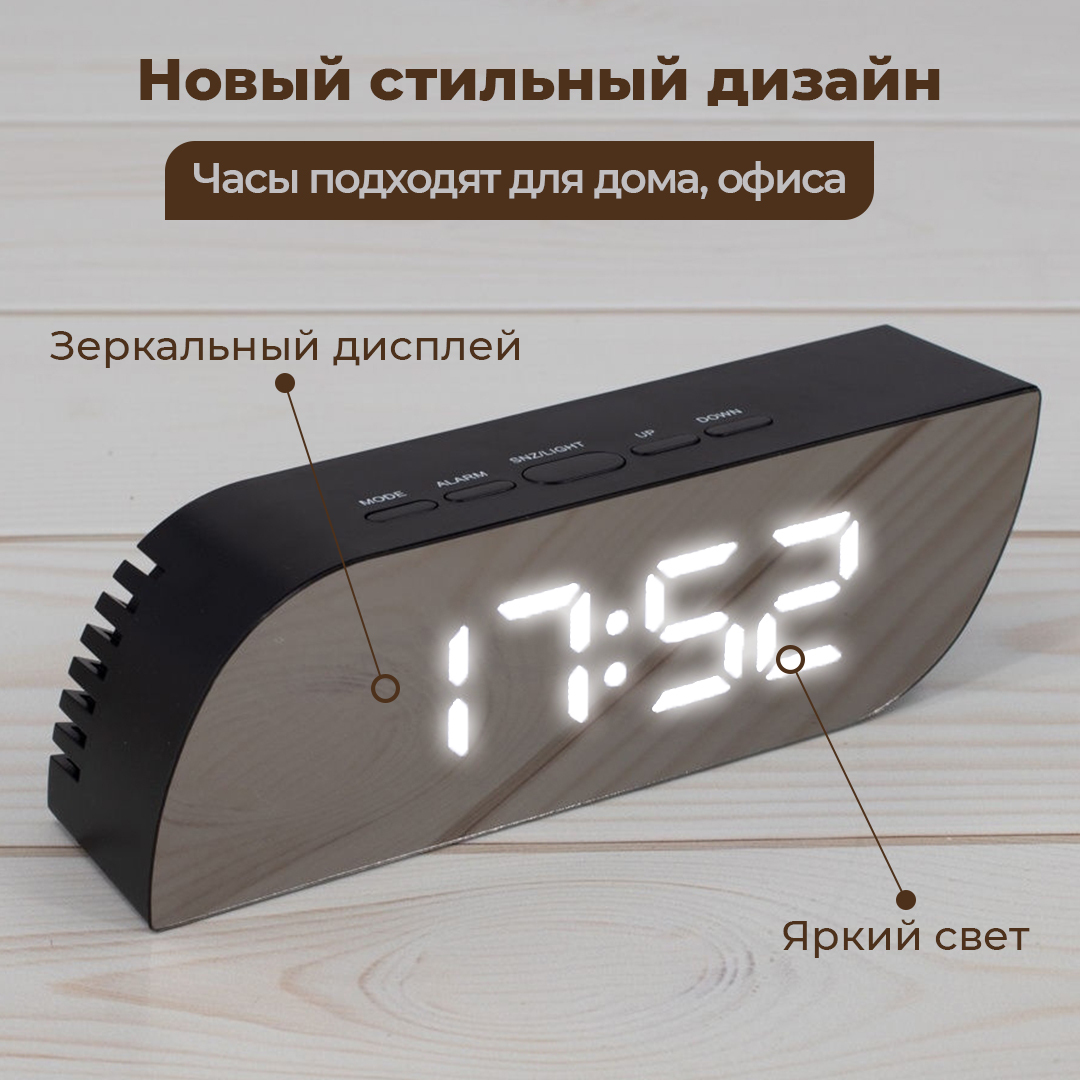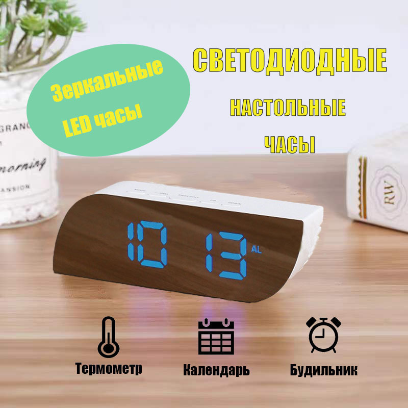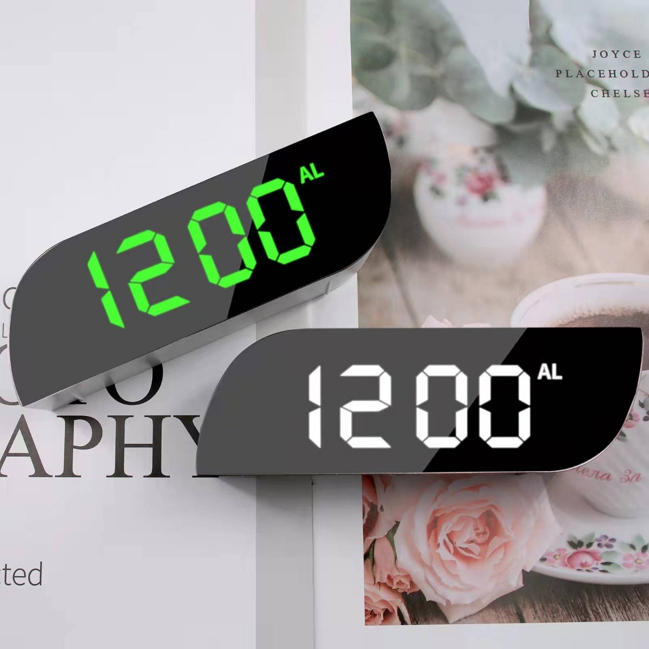 Часы будильник электронные настольные зеркальные, дисплей зеленый
