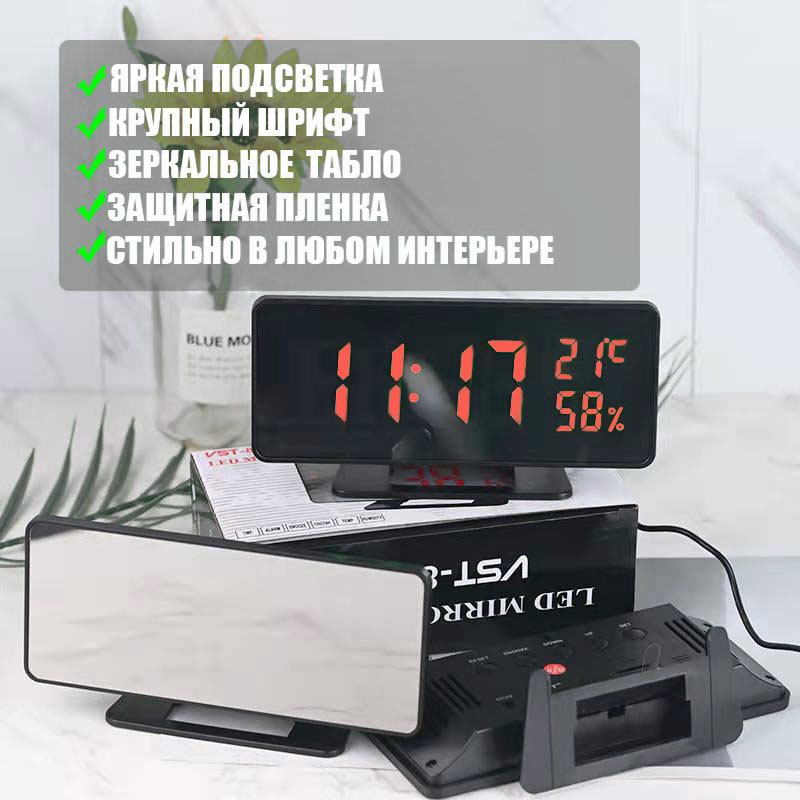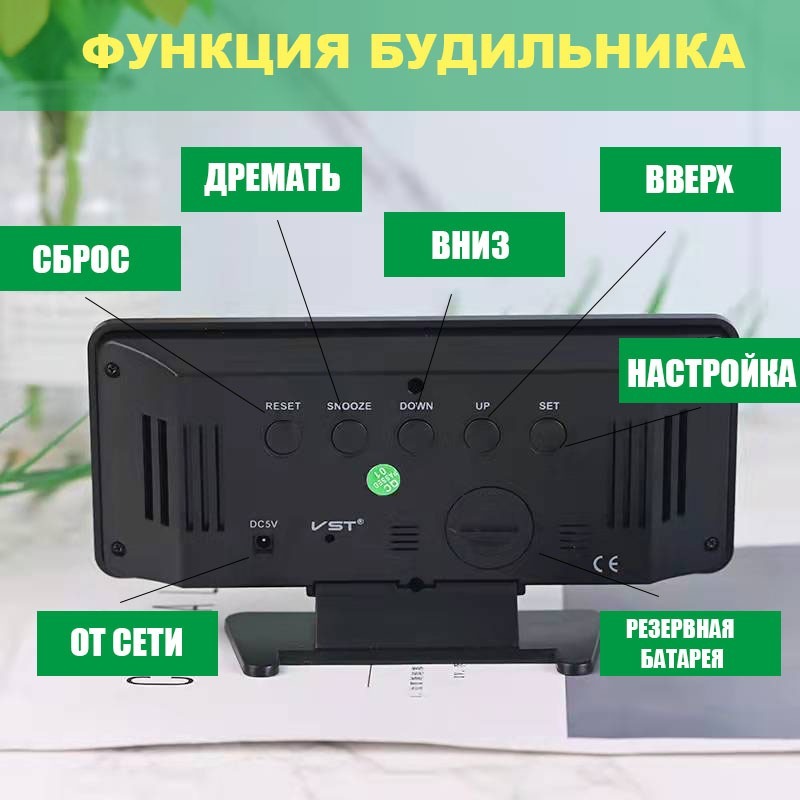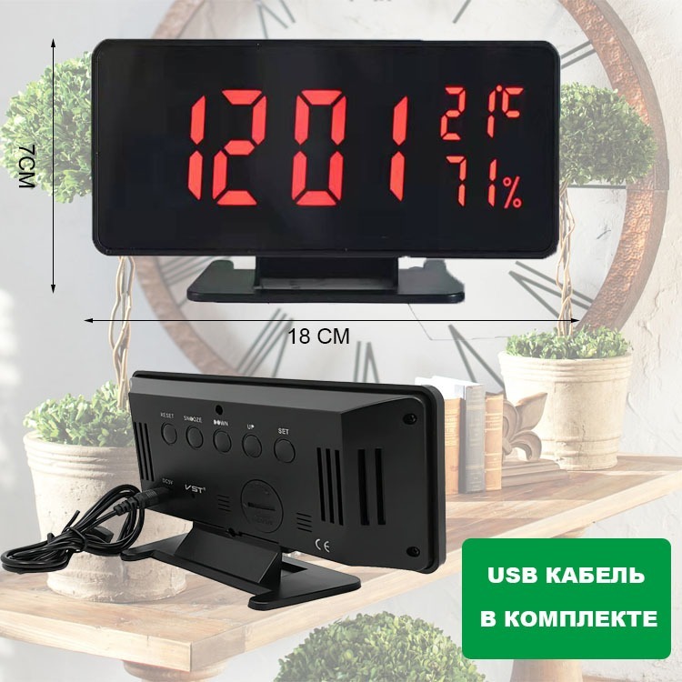 Электронные/цифровые настольные часы-будильник VST 888Y календарь и термометр гигрометр
