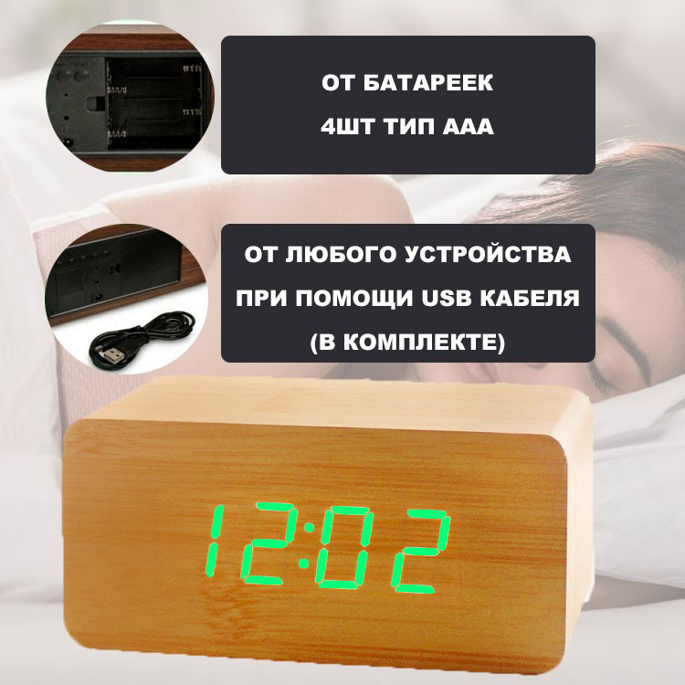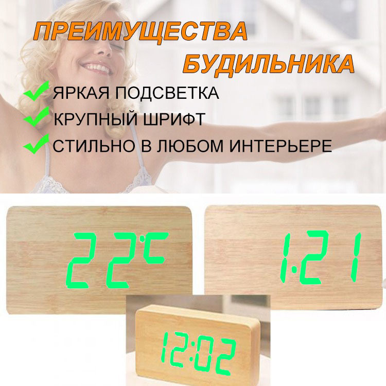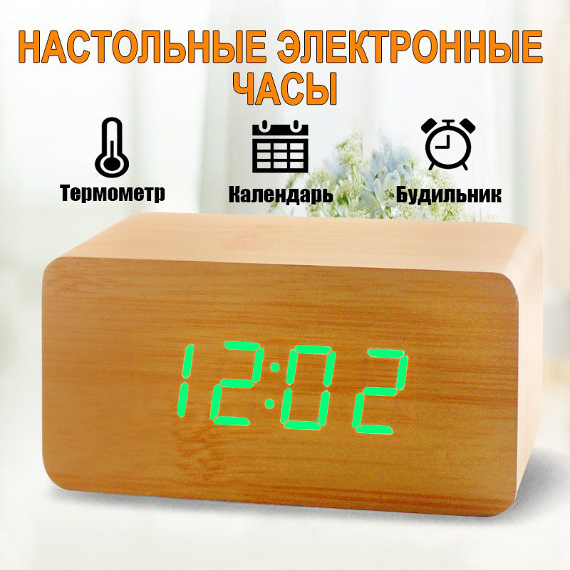 Электронные часы/термометр/календарь/будильник X1292 сделанные под дерево