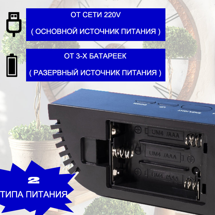 электронный будильник студенческий будильник Черное синее слово (с вилкой)