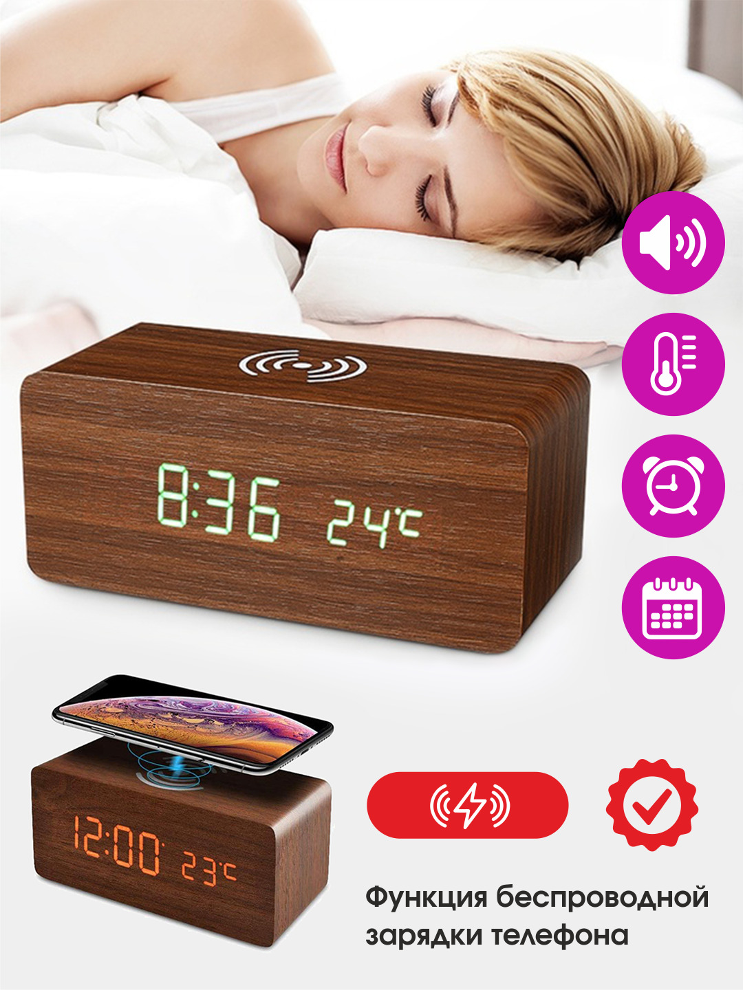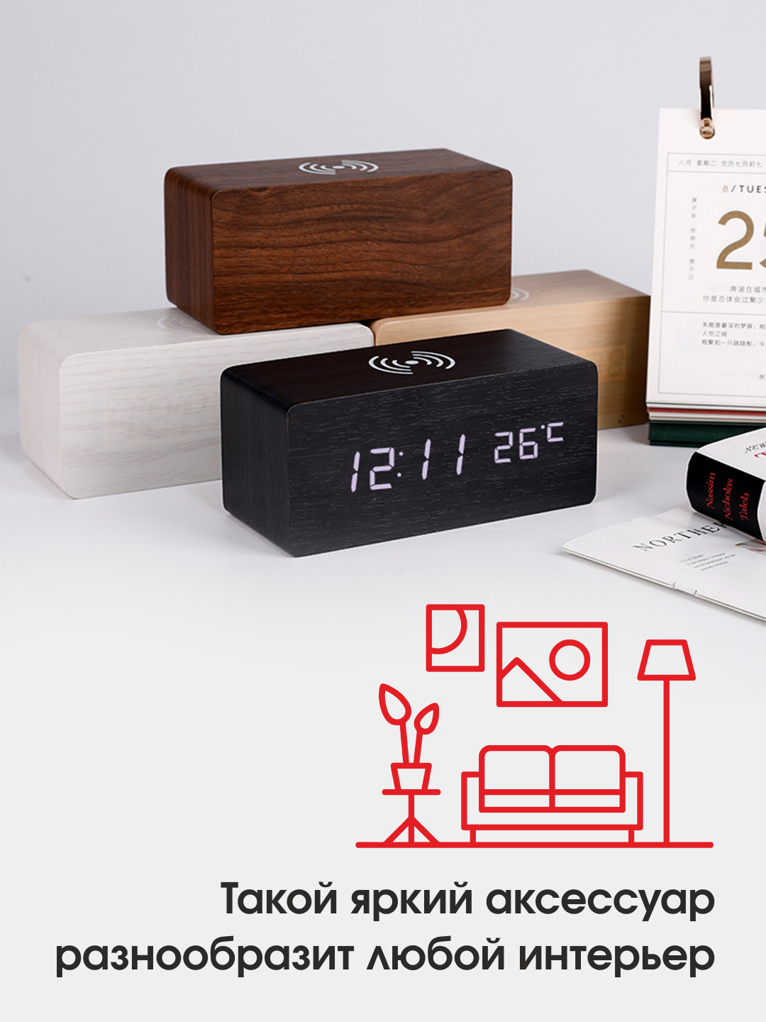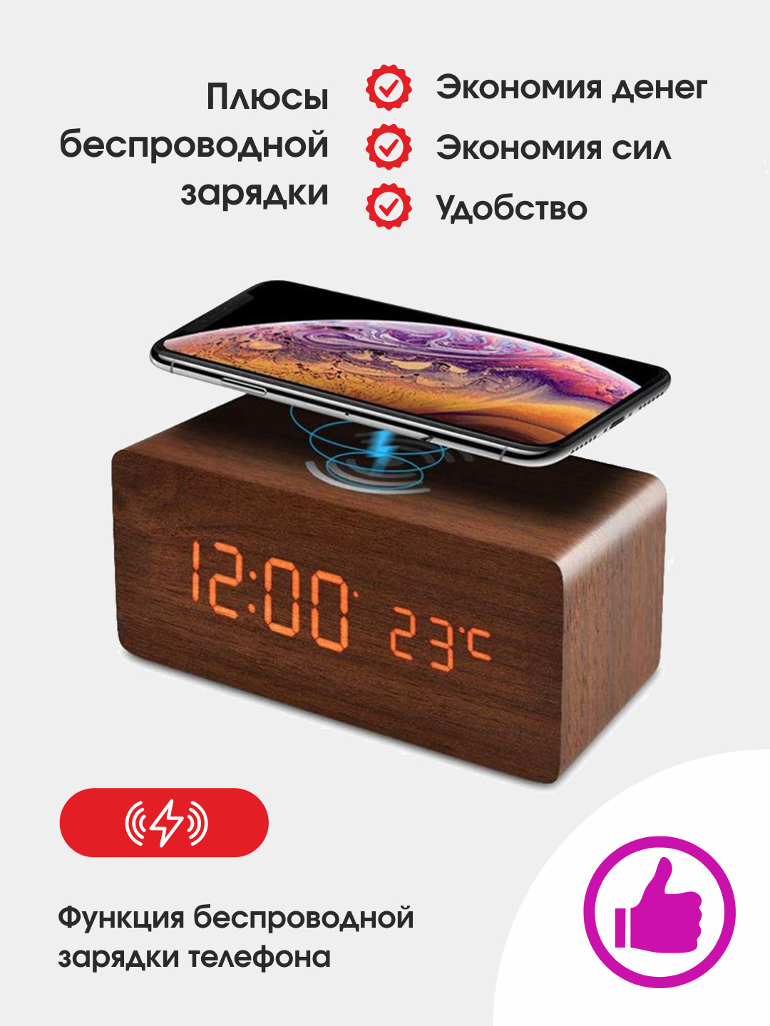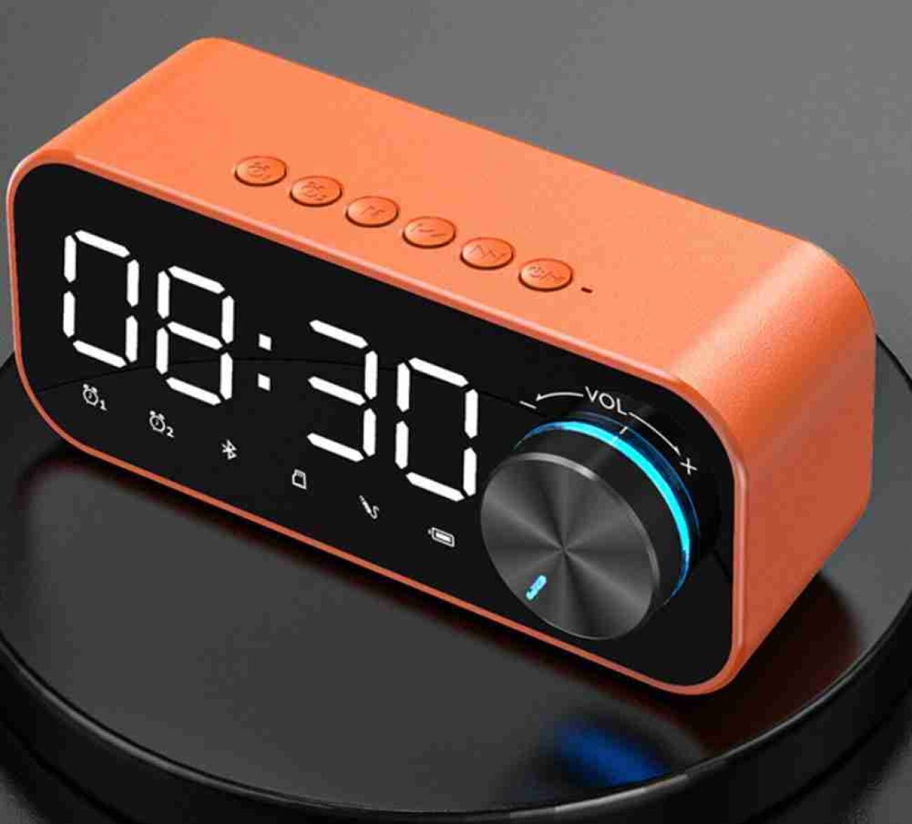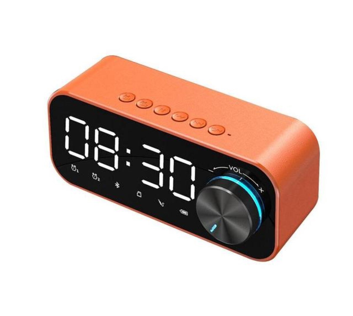 Часы будильник электронные настольные, Bluetooth 5.0 колонка, оранжевые