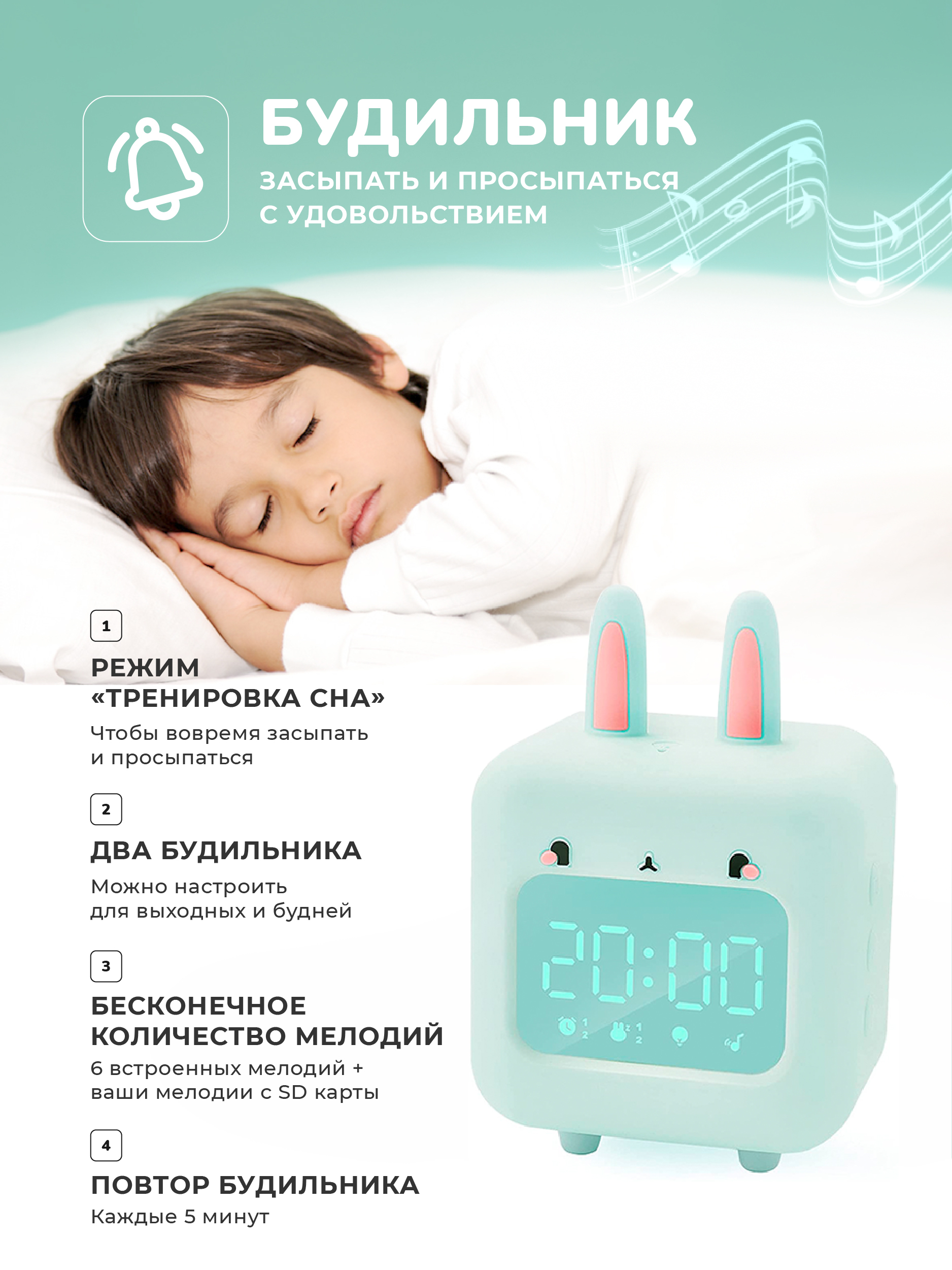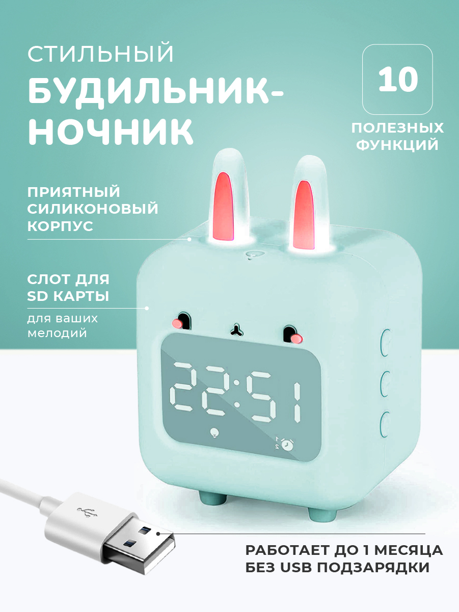 Детский будильник электронный USB, детский ночник силиконовый, детский подарок