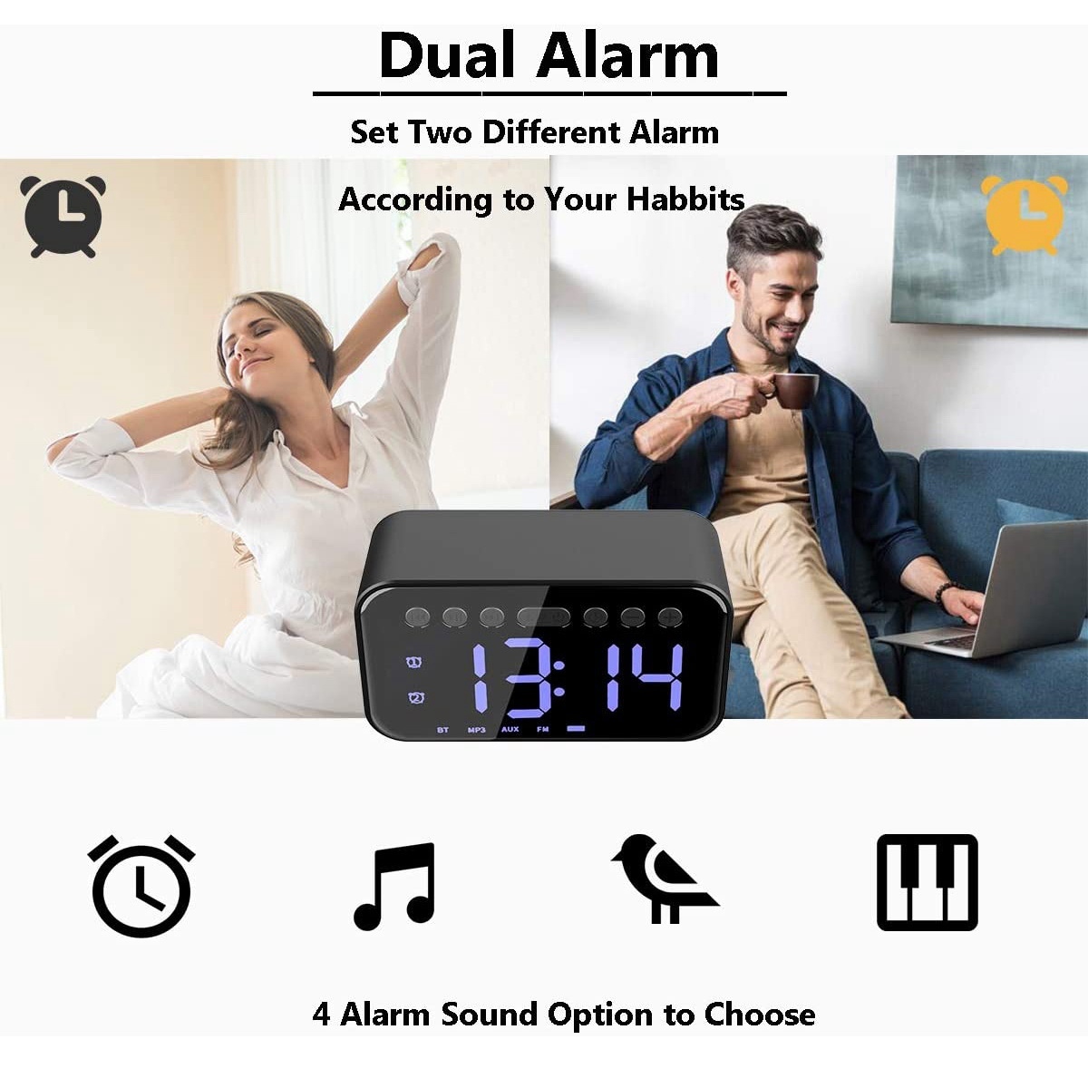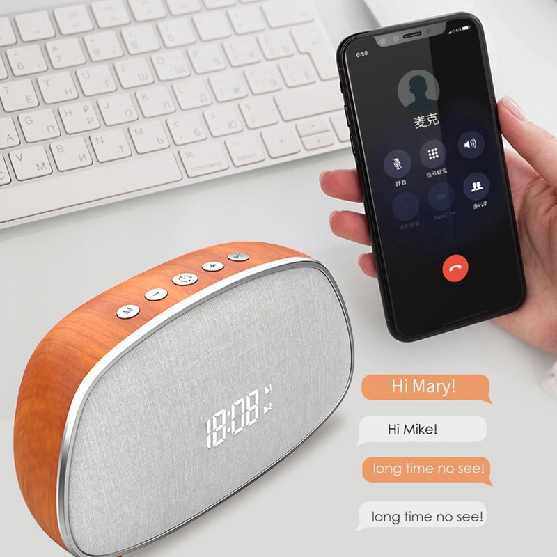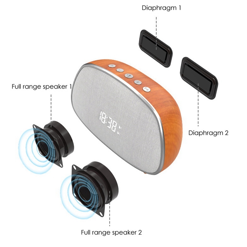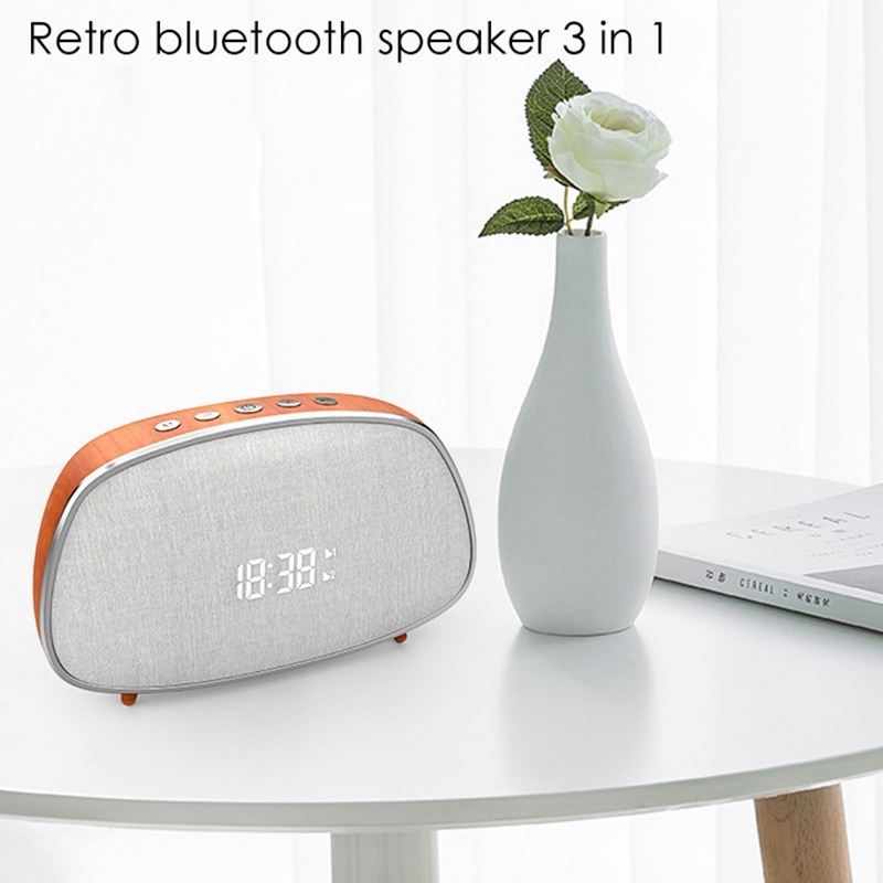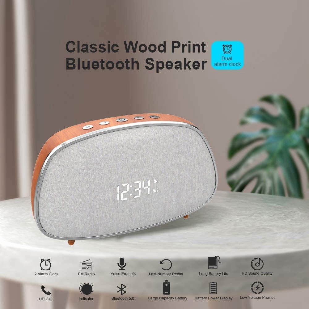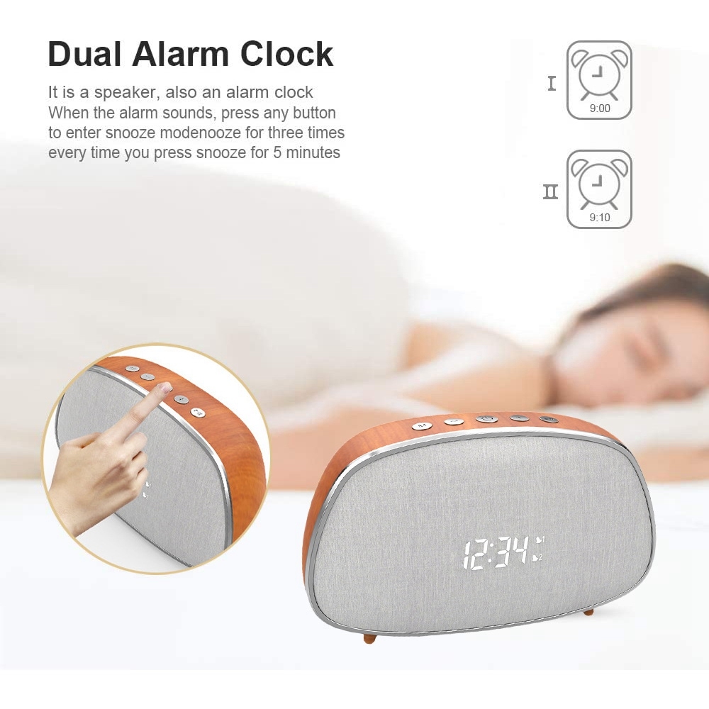 Ретро деревянный цифровой будильник Bluetooth-динамик Hi-Fi FM-радио LED