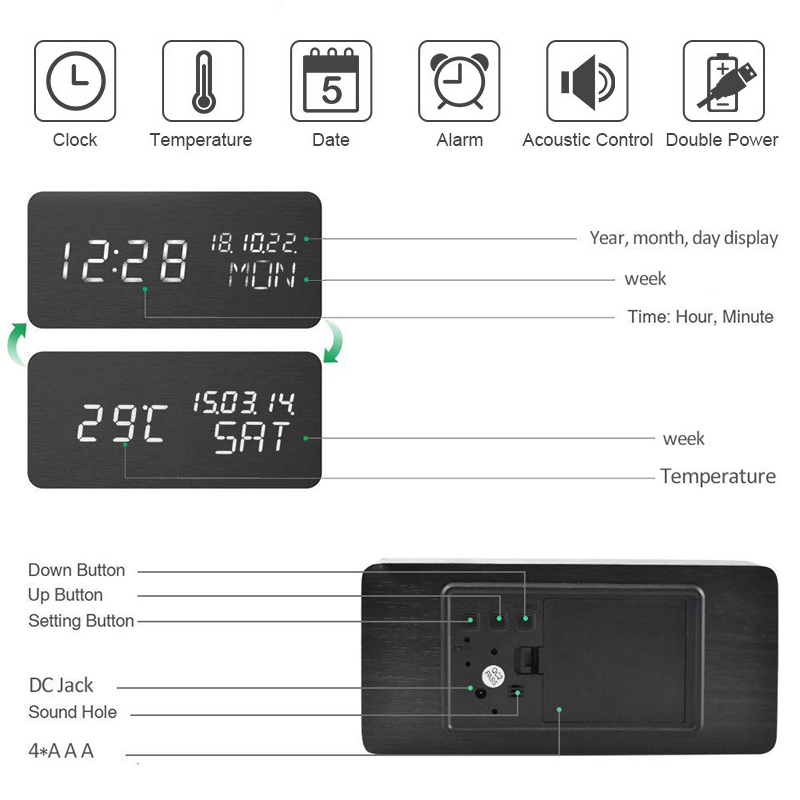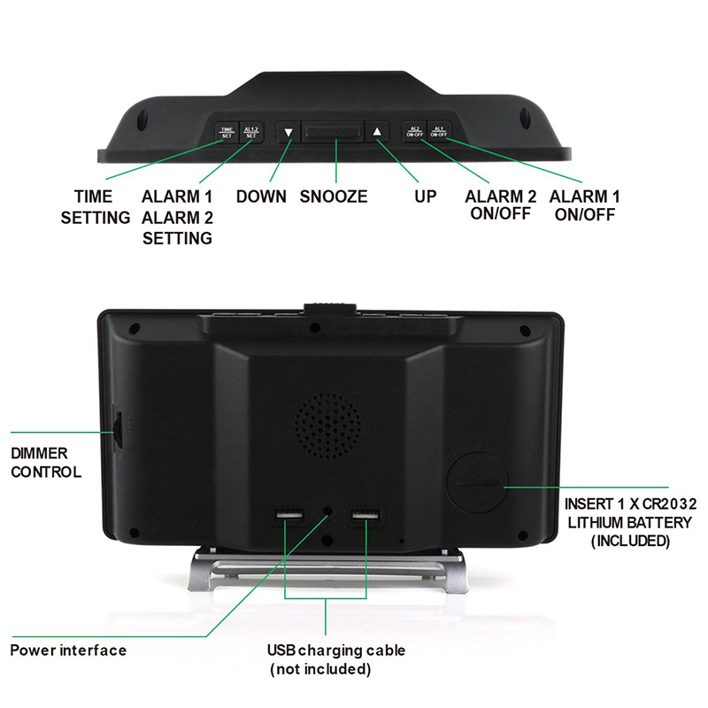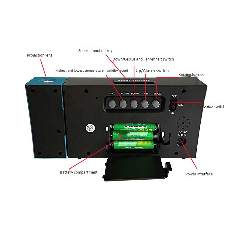 Регулируемый угол даты цифрового будильника с проекцией времени
