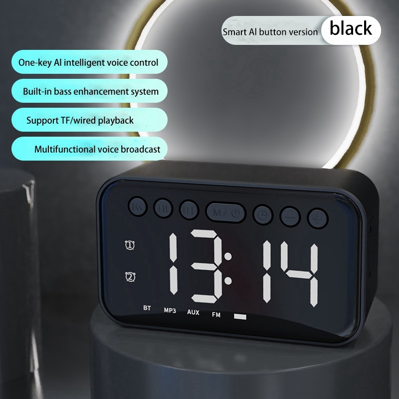 Будильник Bluetooth AI с ЖК-дисплеем для дома на открытом воздухе, черный
