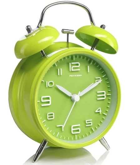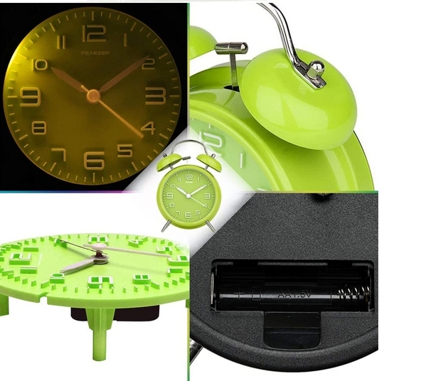Будильник бесшумный металлический с подсветкой зеленый
