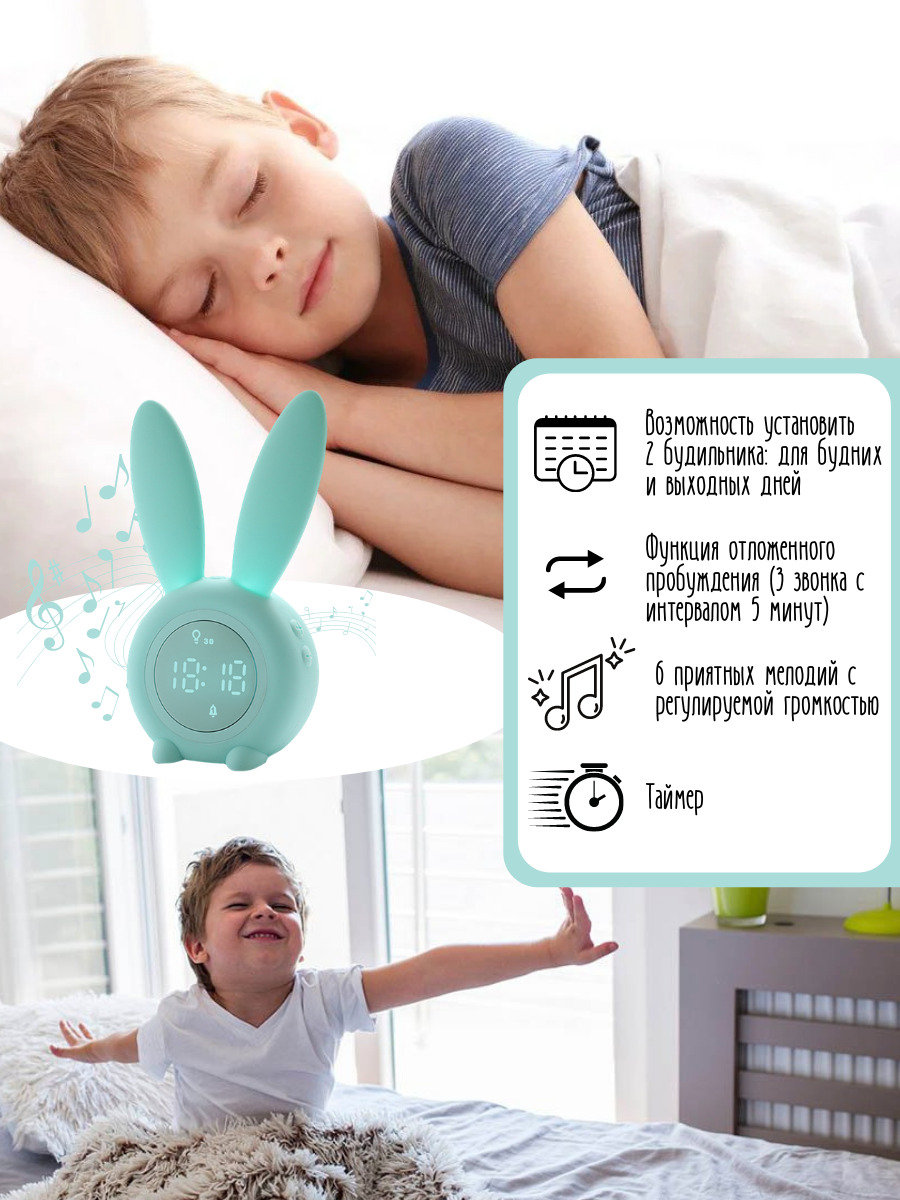 Электронные часы - будильник с подсветкой, детский ночник, умный будильник для детей