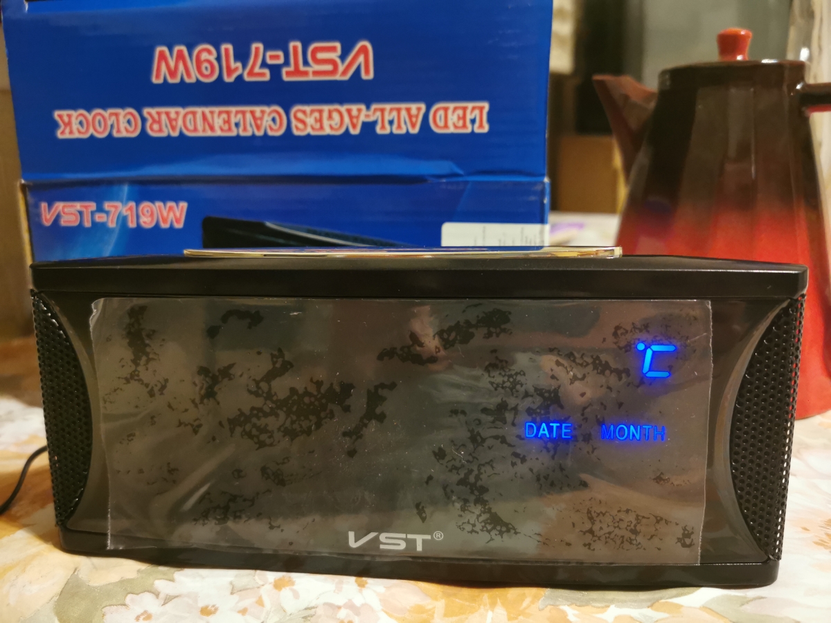 Настольные электронные часы Lemon Tree VST-719W-5 (Черный c синими цифрами)