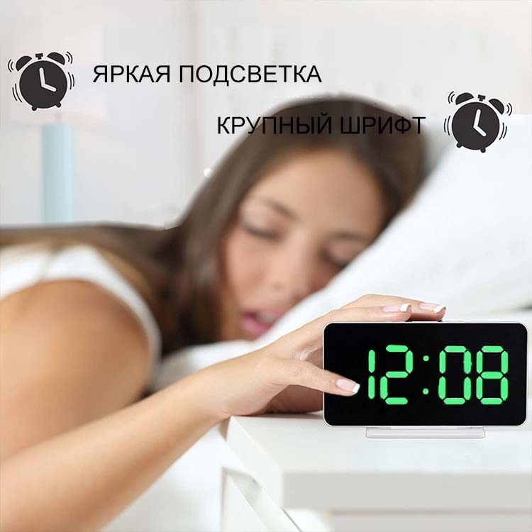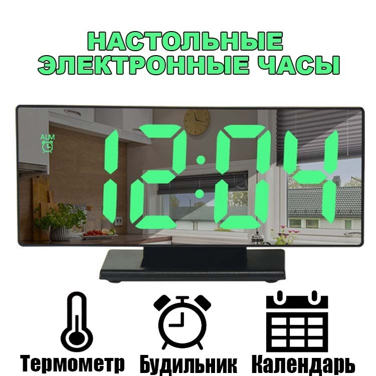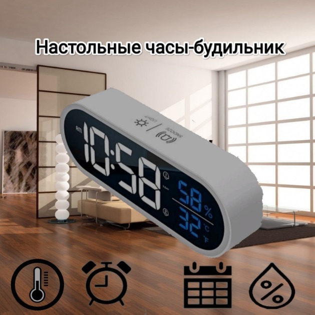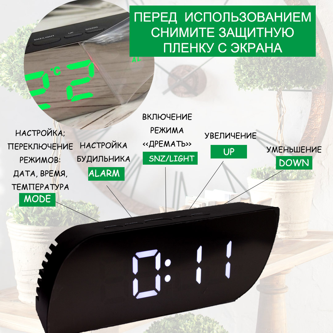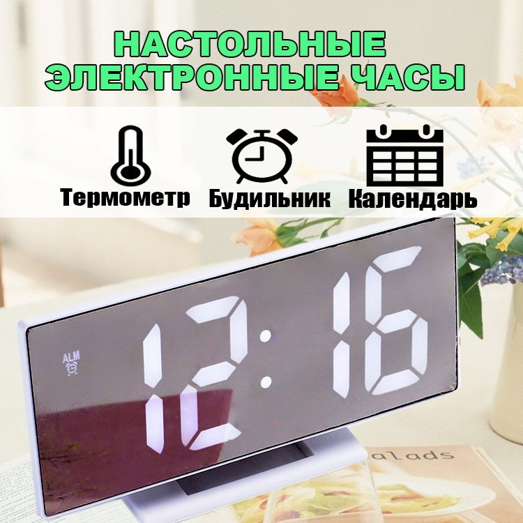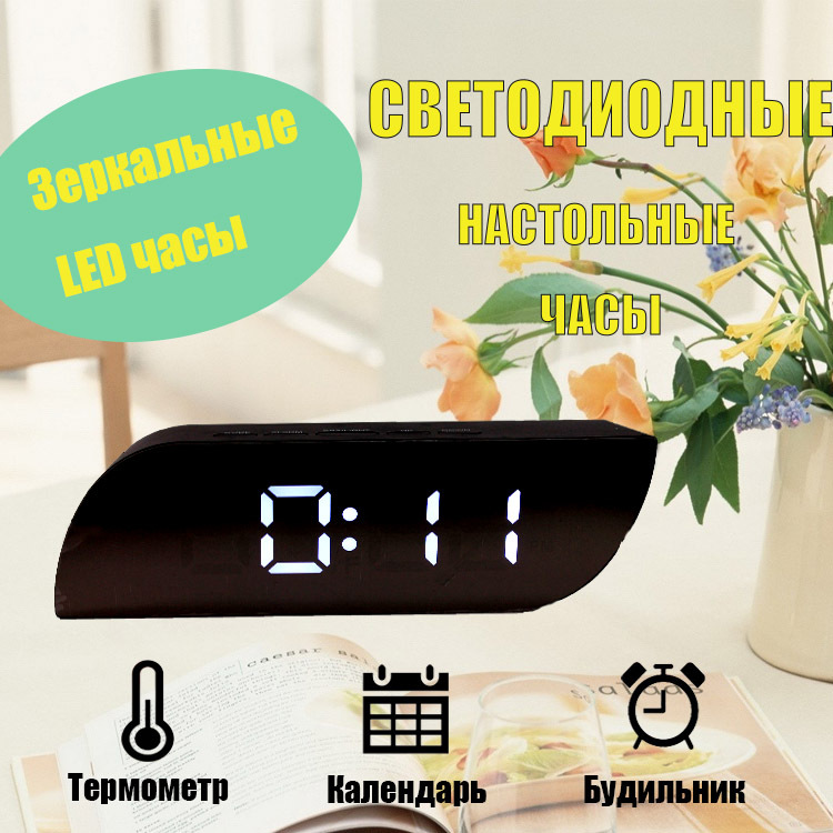 Настольные часы LED / Электронные настольные зеркальные часы Mini 018 с будильником,термометром,календарем,подсветкой LED