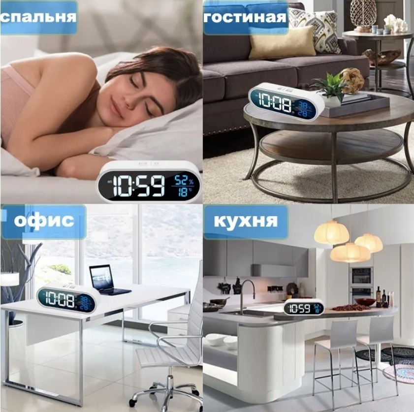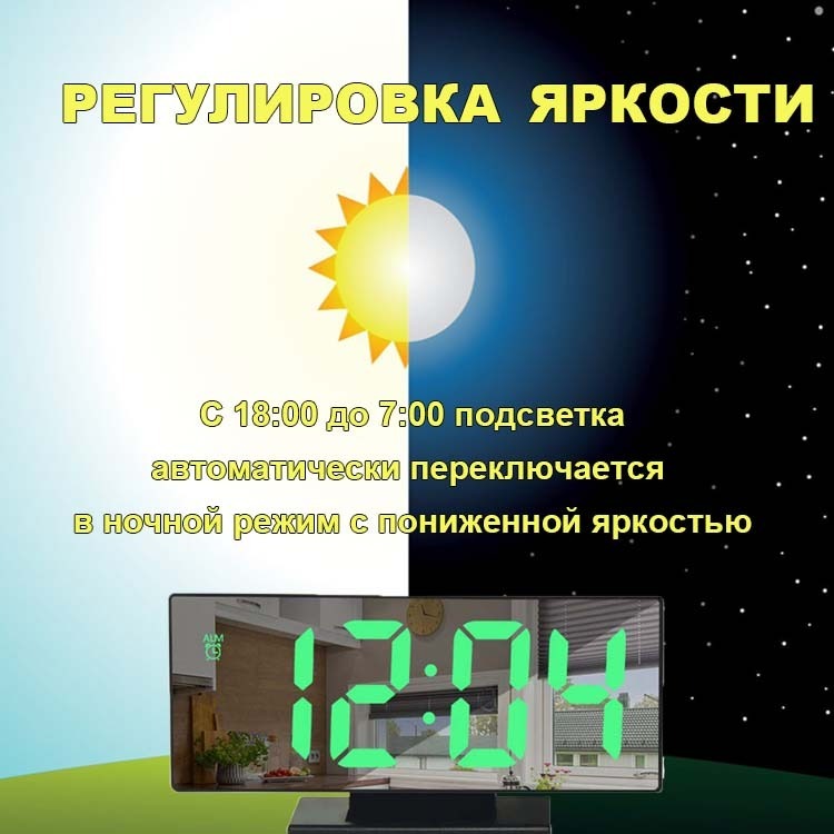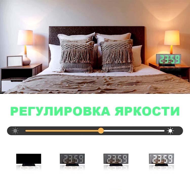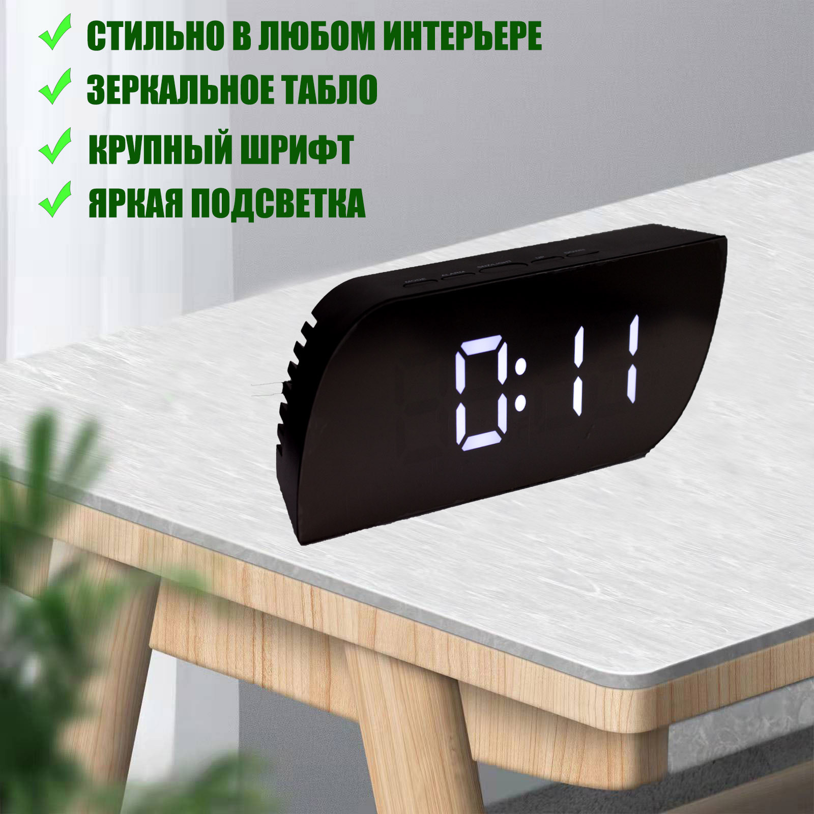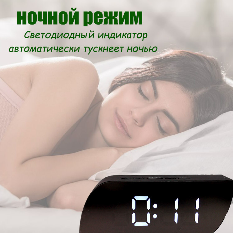 Настольные часы LED / Электронные настольные зеркальные часы Mini 018 с будильником,термометром,календарем,подсветкой LED