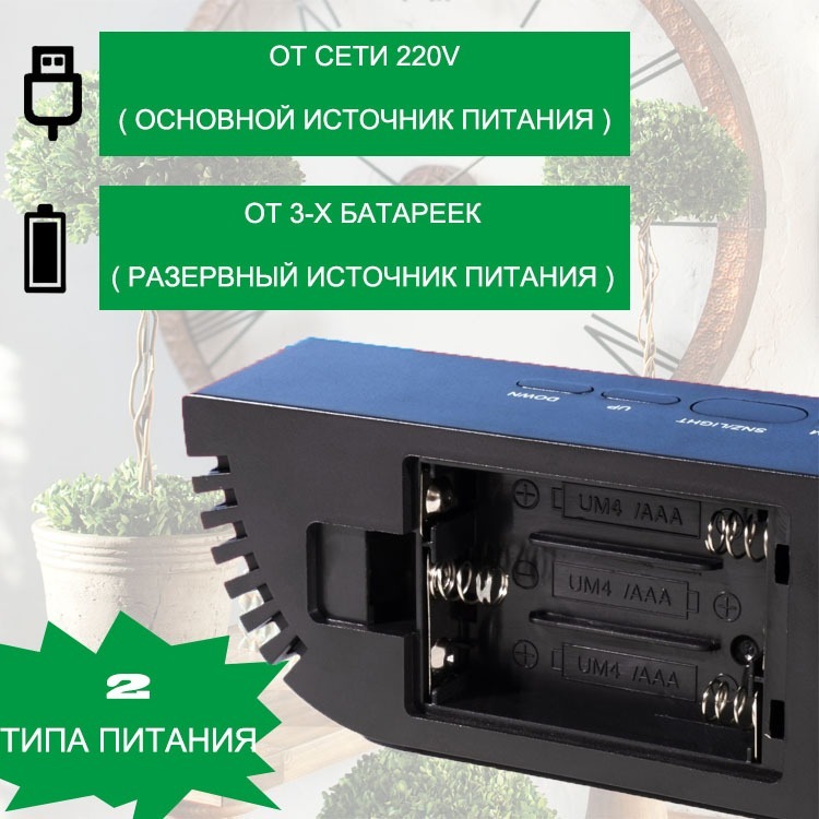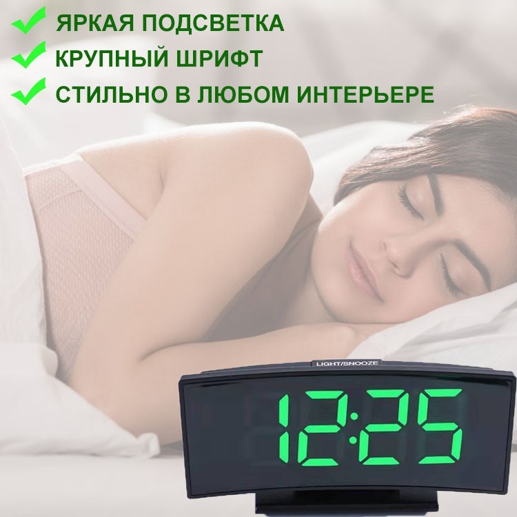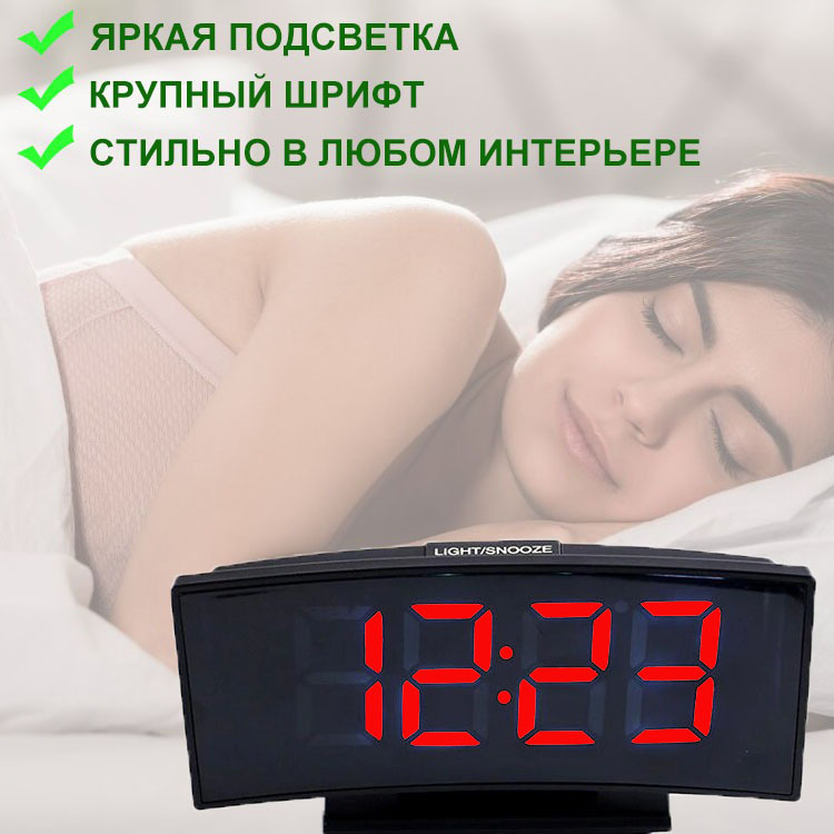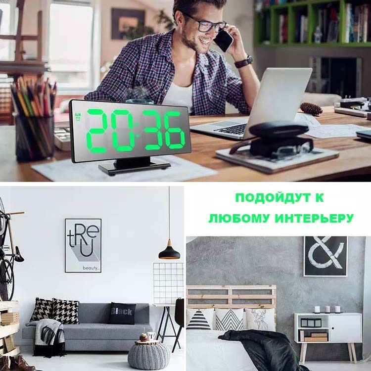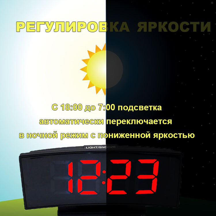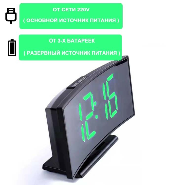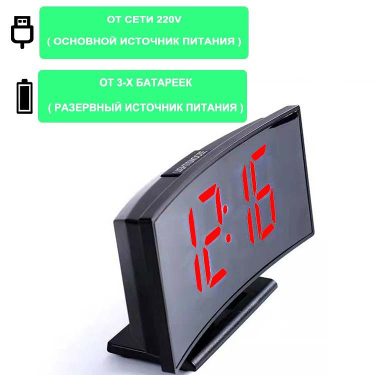Настольные часы LED / Электронные настольные зеркальные часы DS-3618L с будильником,термометром,календарем,подсветкой LED