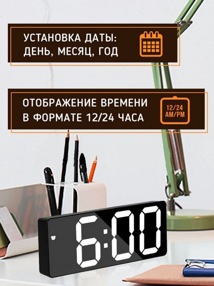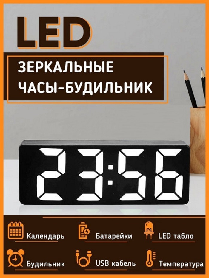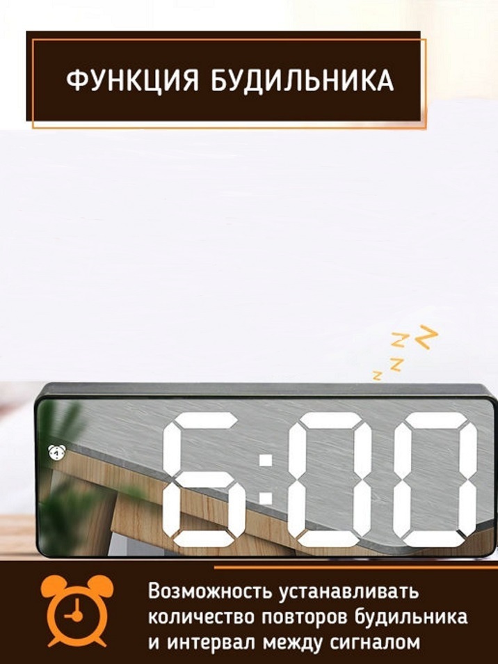 Светодиодный будильник Цифровые настольные часы Электронные часы (белый шрифт)