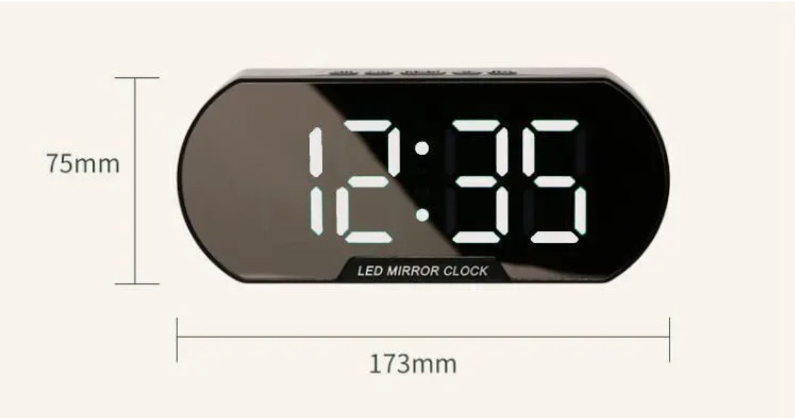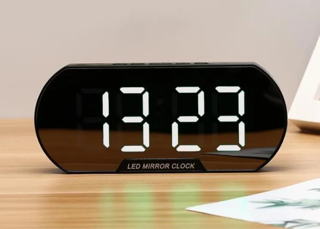 Часы-будильник с LED дисплеем и беспроводной зарядкой, черный, светлые цифры