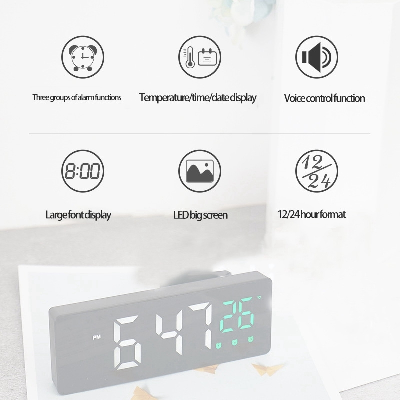 Часы электронные x8811/настольные/будильник с датчиком температуры и влажности/голосовым контролем/40 мелодий звонка