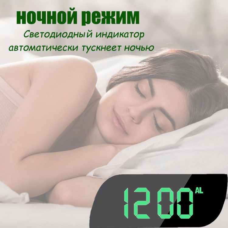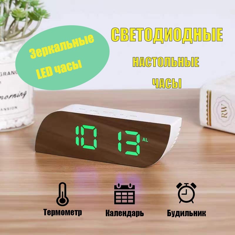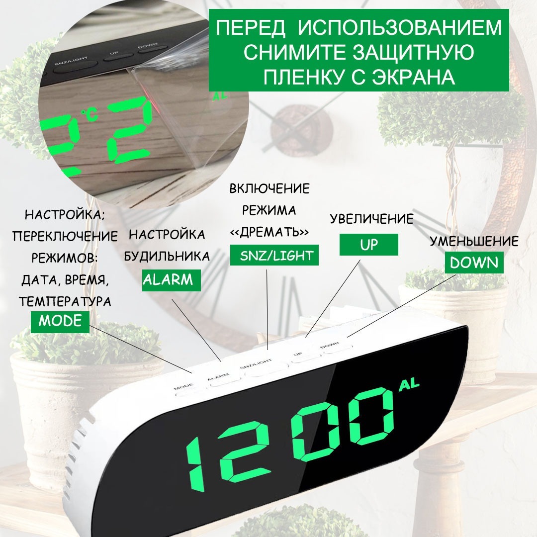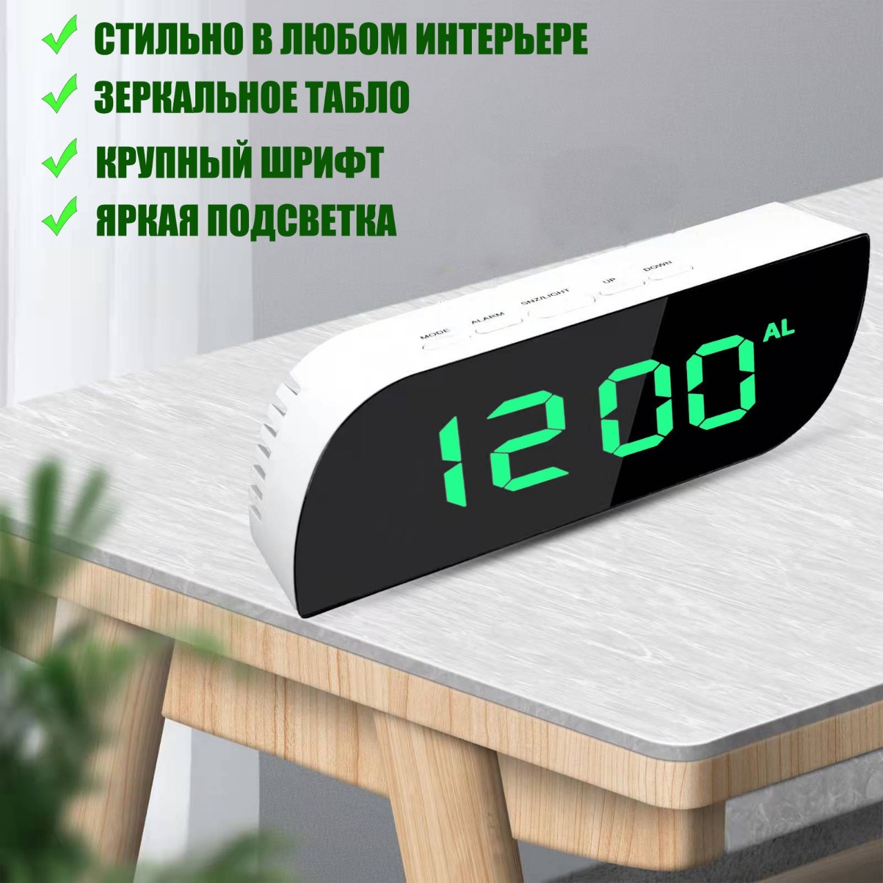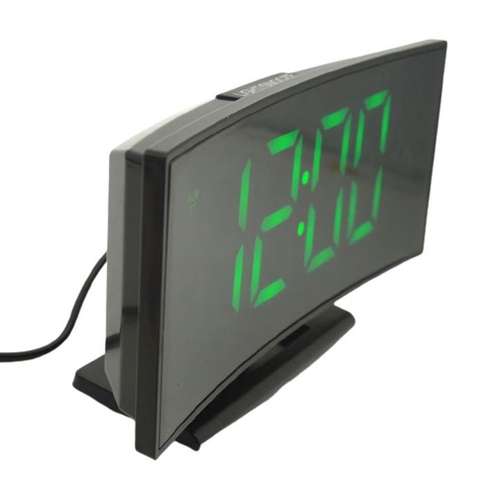 Часы настольные электронные с будильником, (черный, зеленая подсветка)