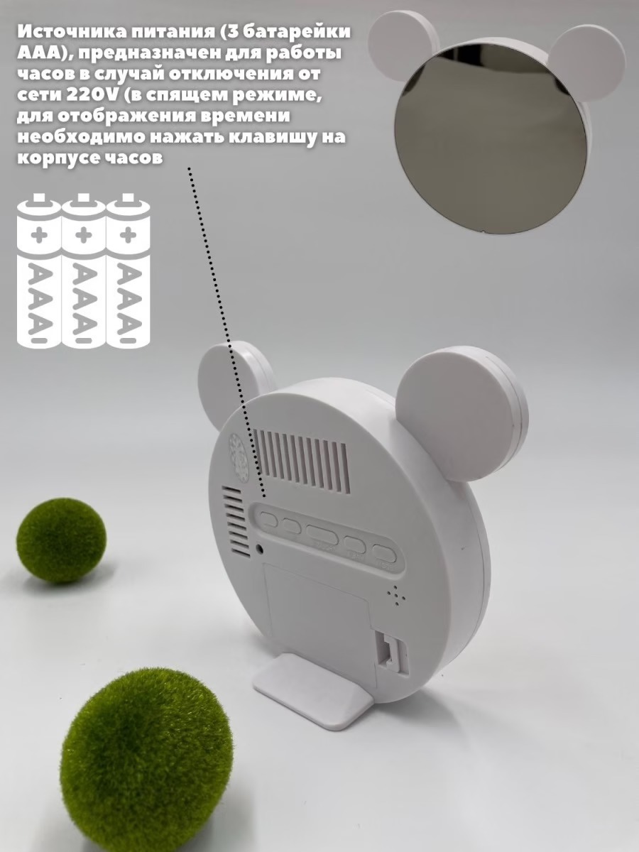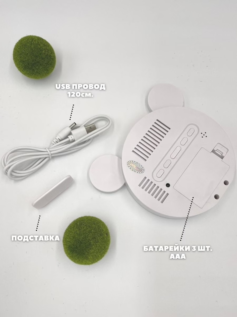 Детский будильник, будильник с милым кроликом, белый шум зеленый