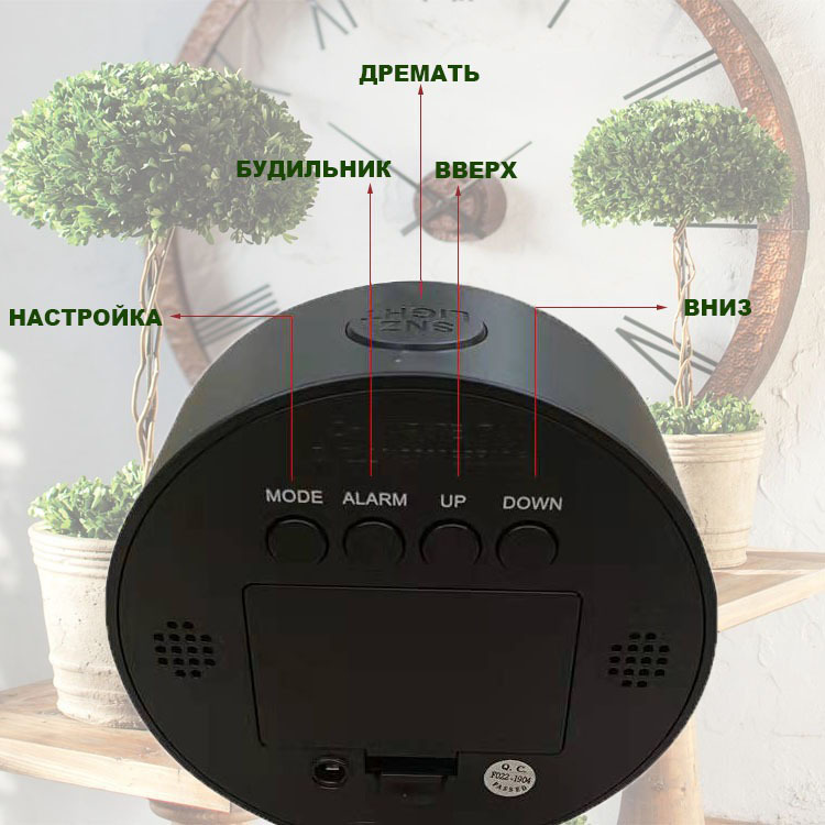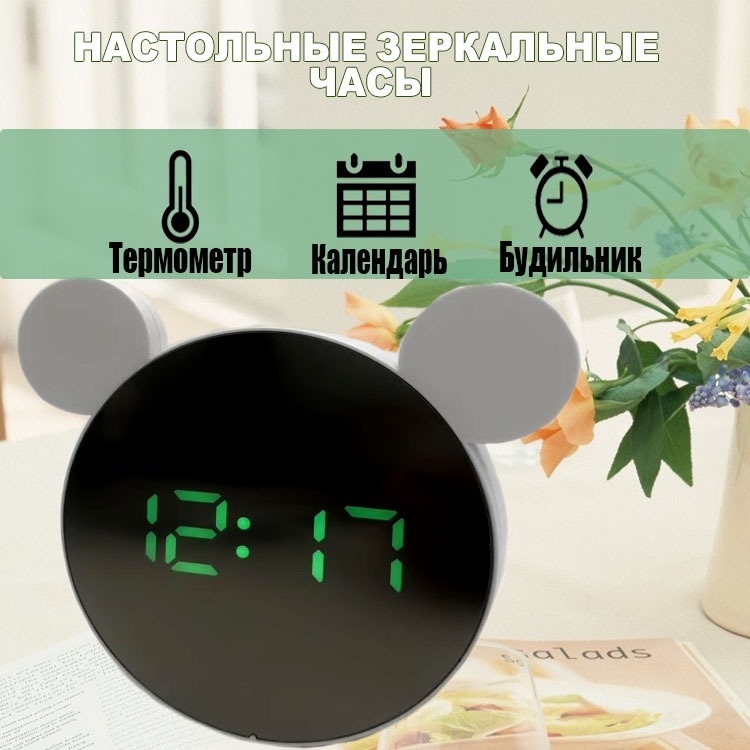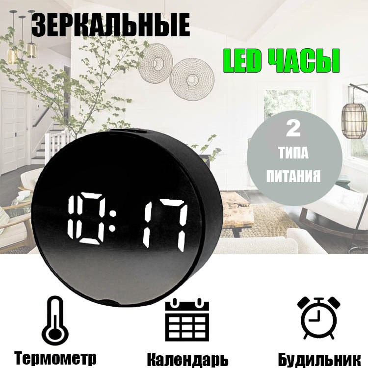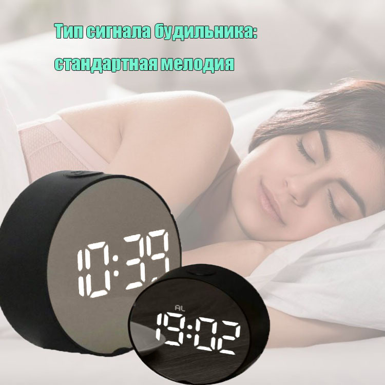 Круглые зеркальные настольные электронные часы-будильник DT-6505 с измерение температуры