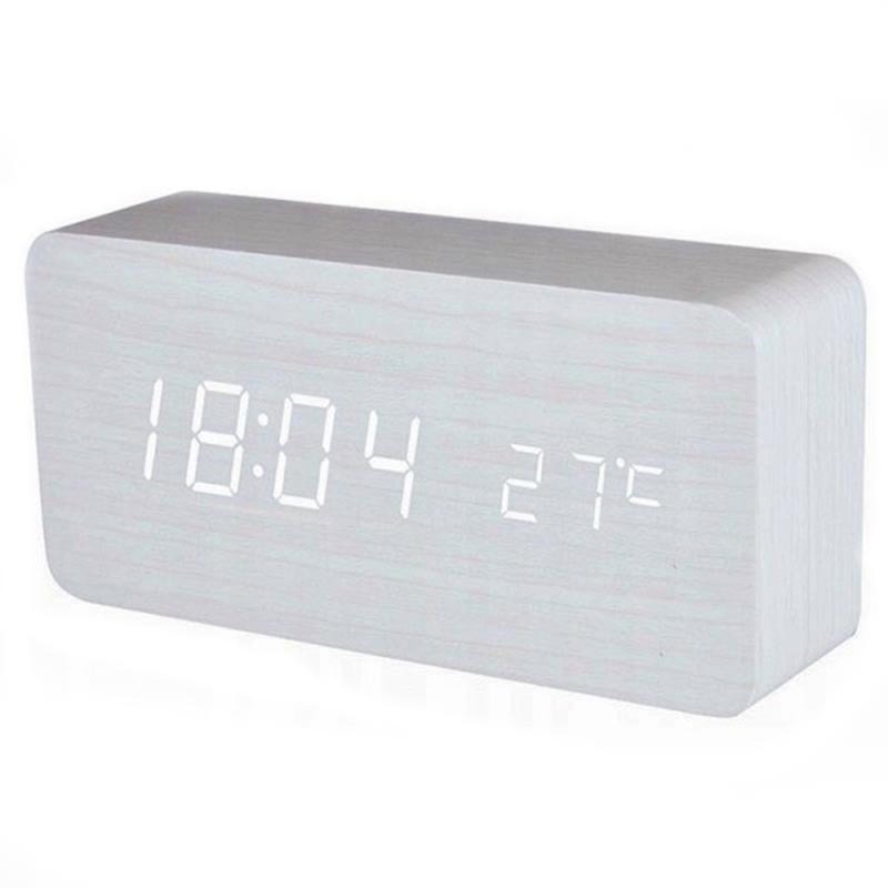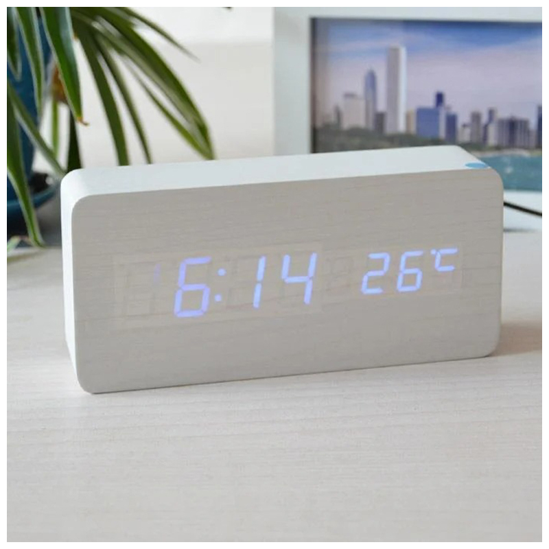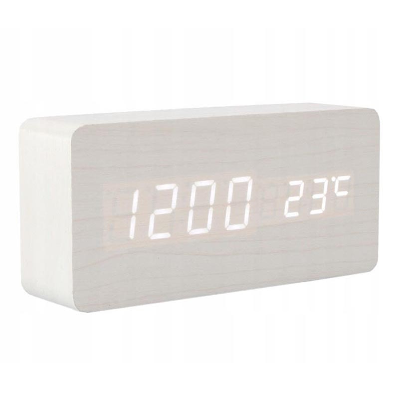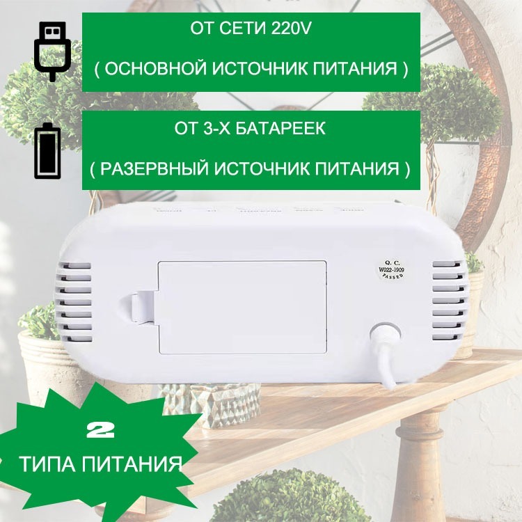 Часы настольные электронные на батарейках и от сети/ будильник/часы. Белые с красным циферблатом