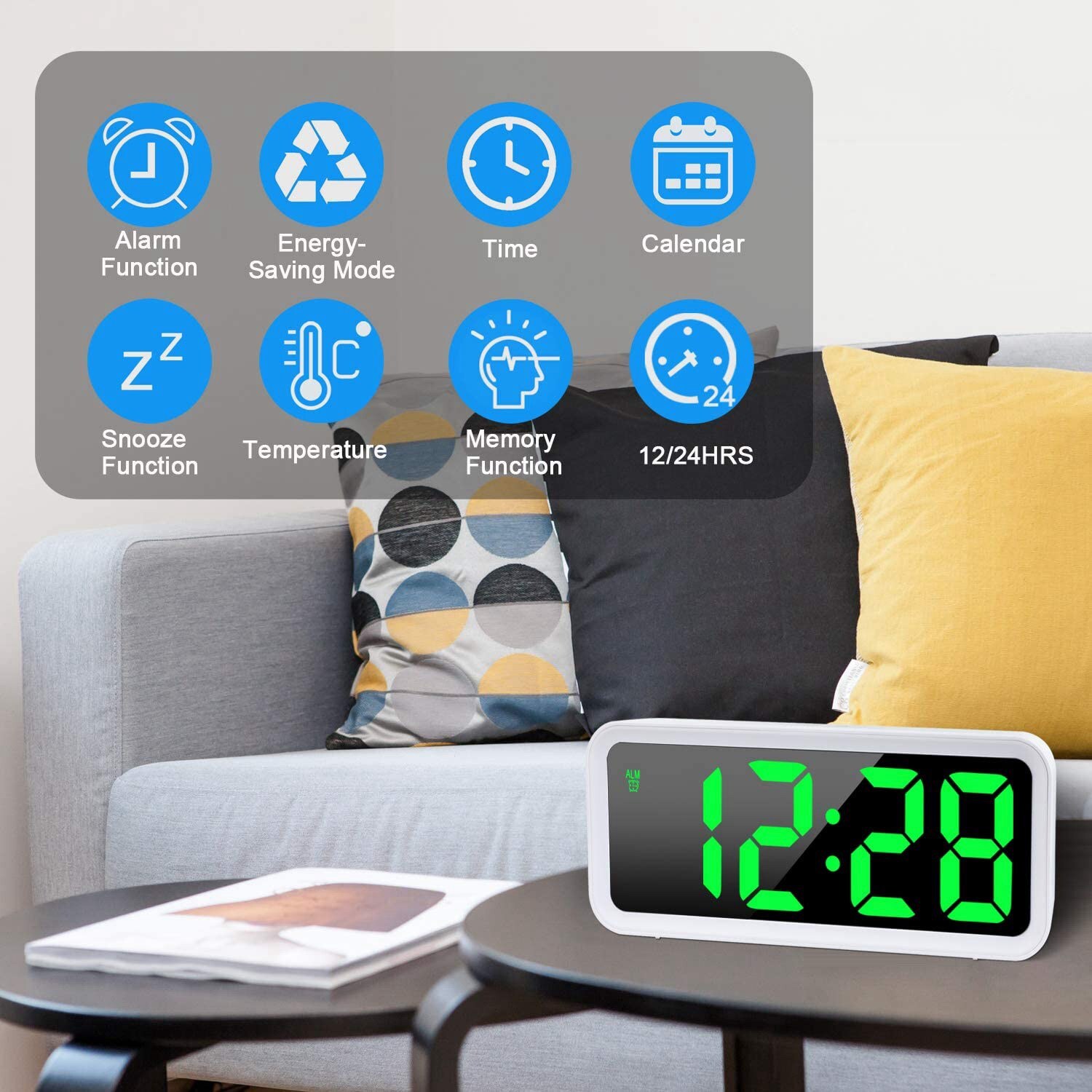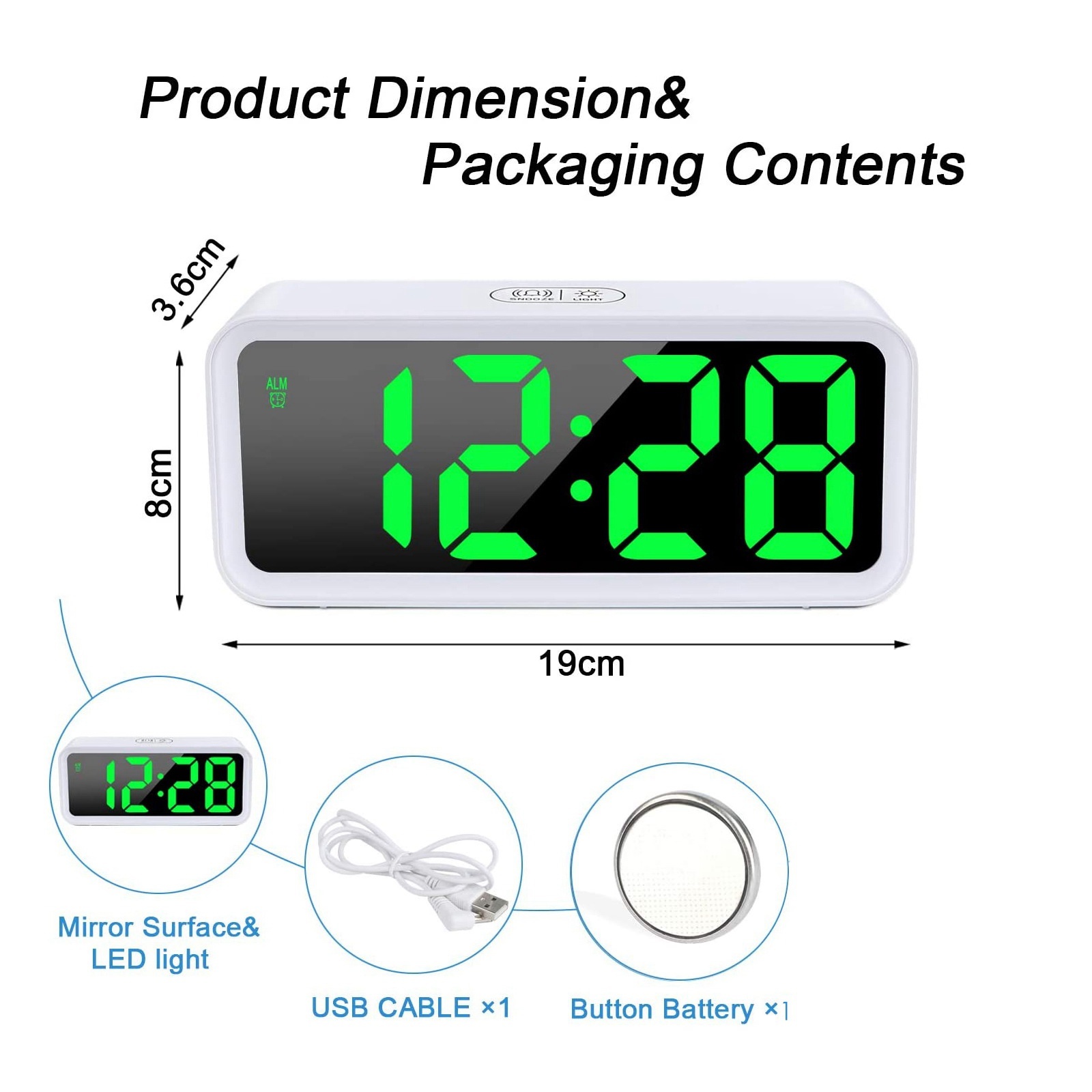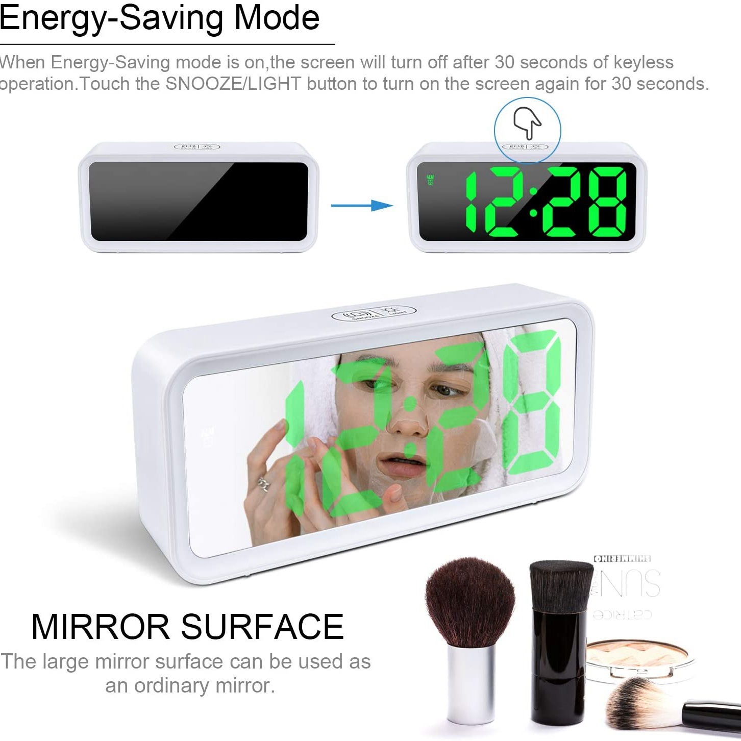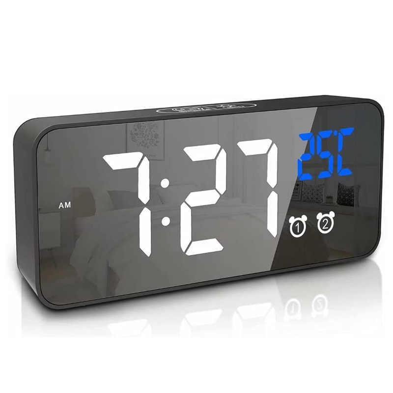 Цифровой зеркальный будильник, Настольные светодиодные часы с большим ЖК-дисплеем, красный