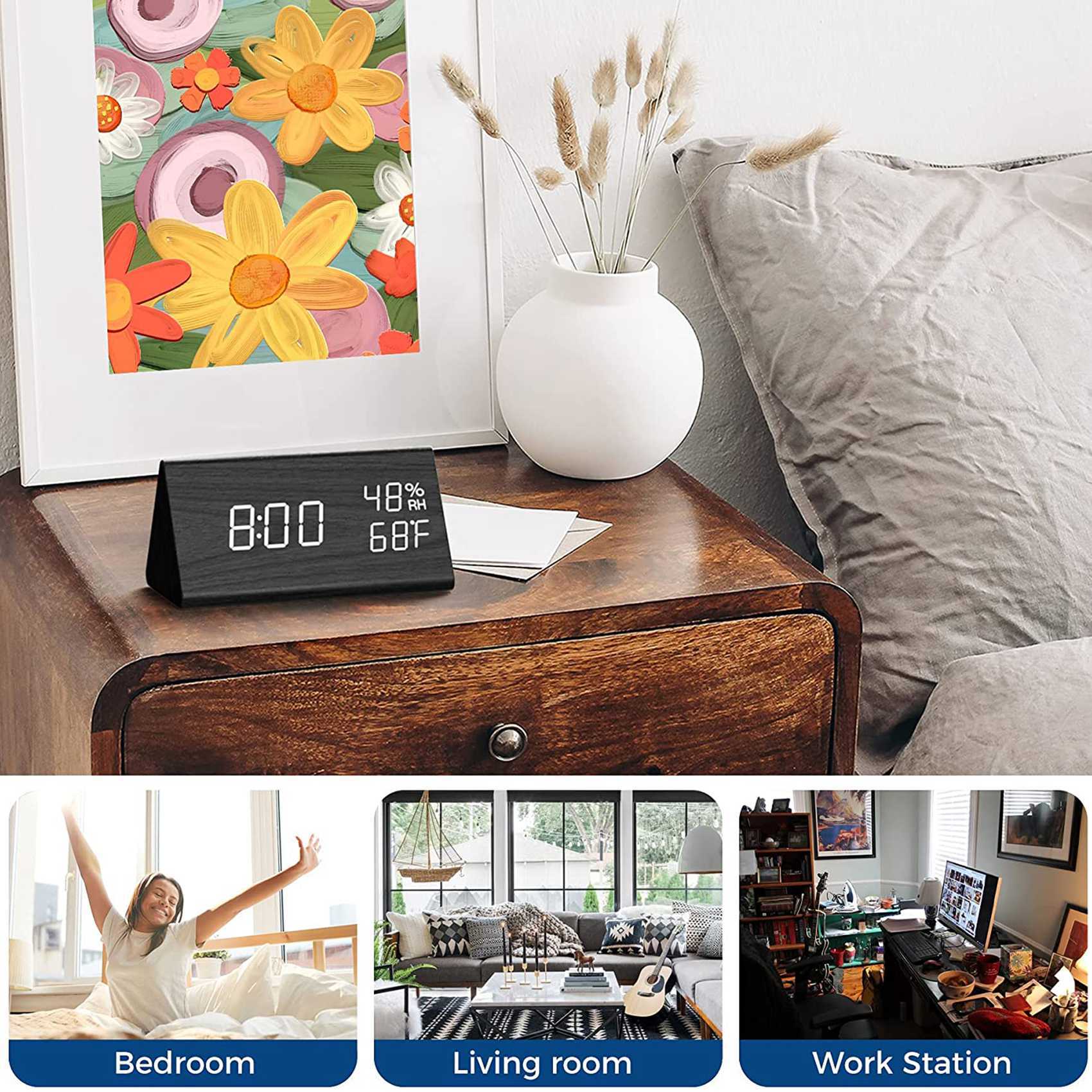 FM-будильник, светодиодный большой цифровой электронный настольный часы, черный