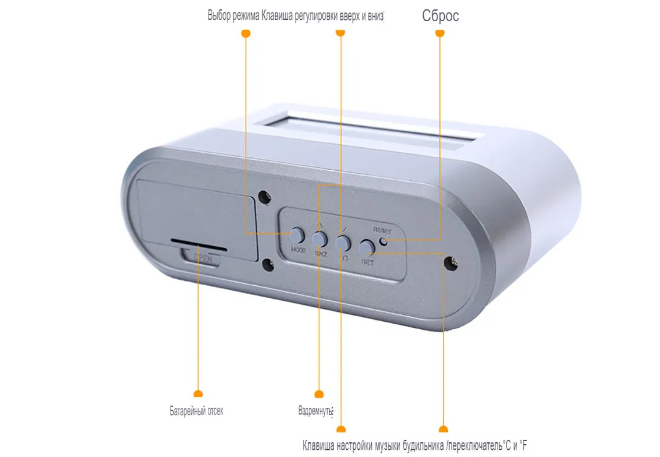Часы электронные с проекцией, календарь, будильник, 2 ААА, 15*11 см