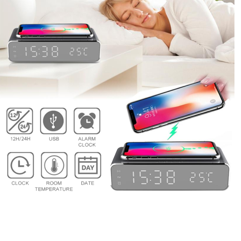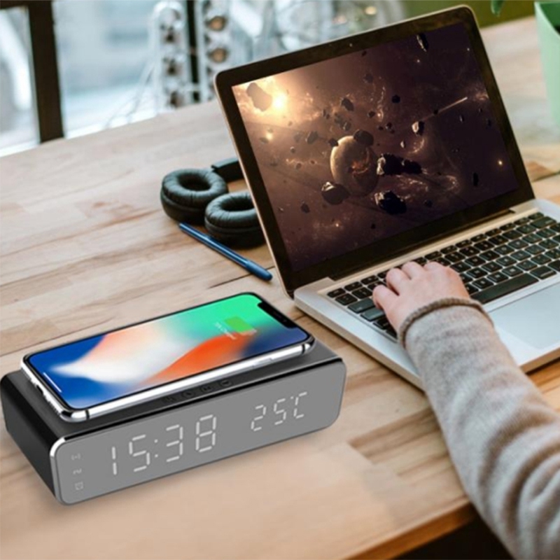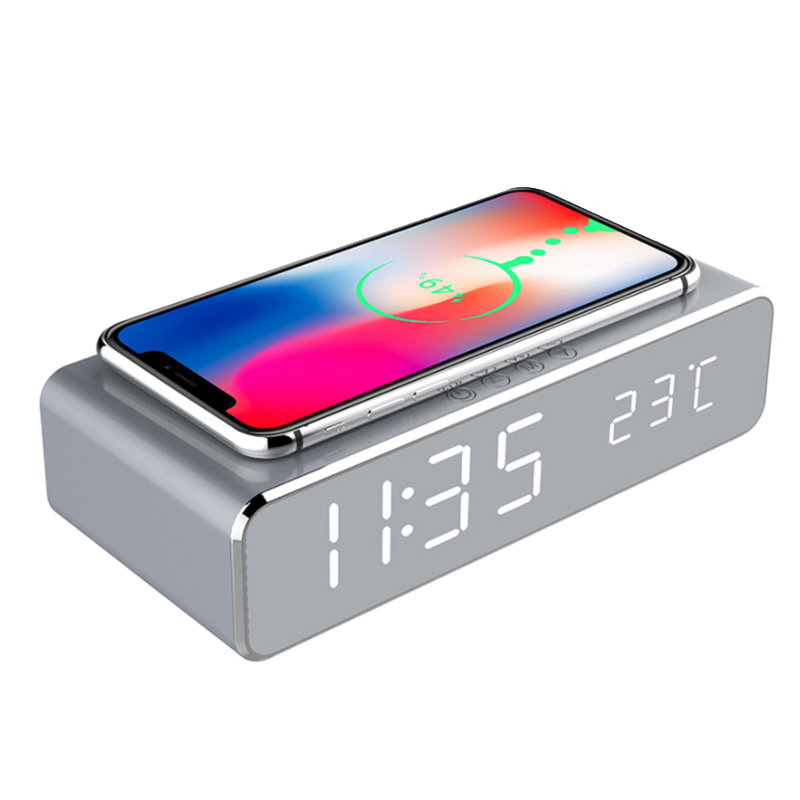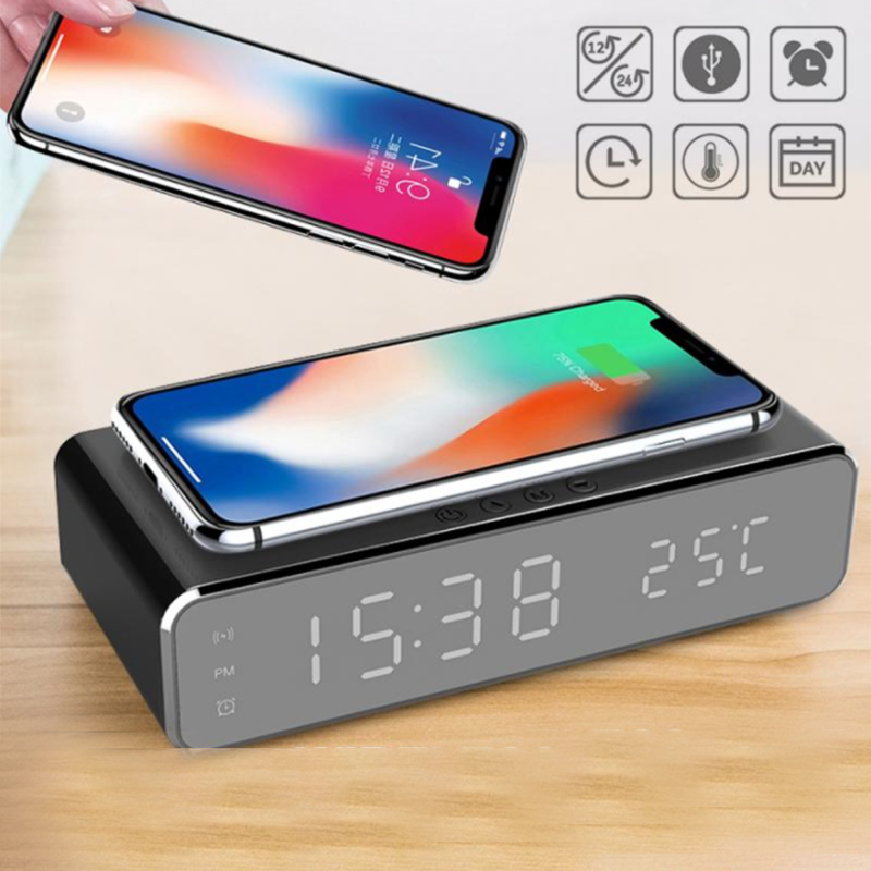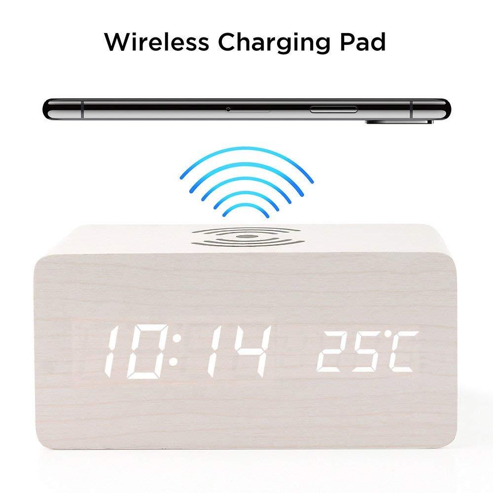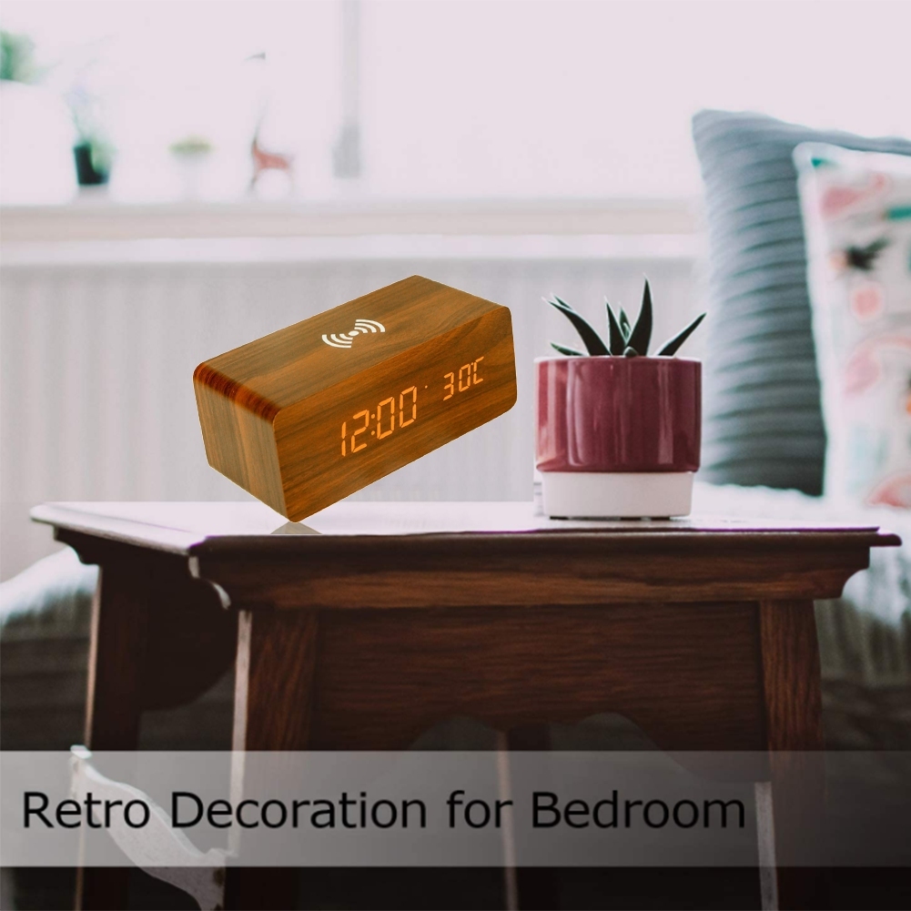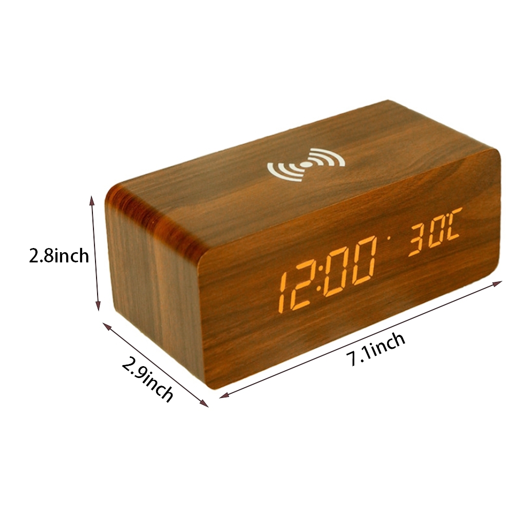 Электронные часы, Деревянные часы с беспроводной зарядкой для мобильных телефонов, LED