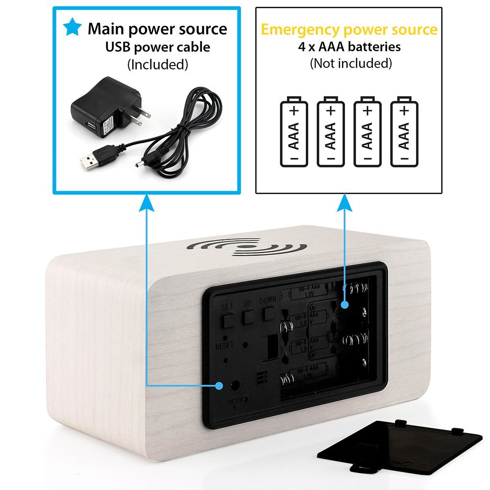 Деревянный будильник с беспроводной зарядкой Qi - белый
