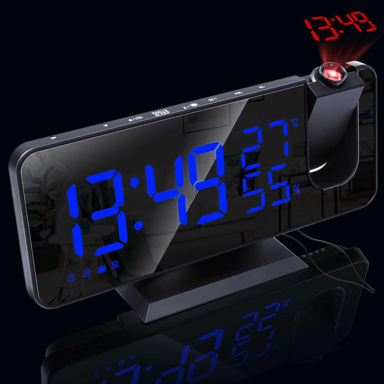 Цифровой проекционный будильник с 7 цветными ночниками, синий