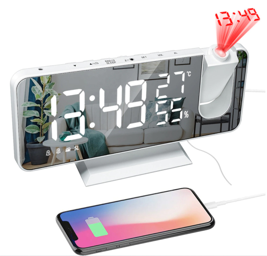 Электронный будильник LED Mute используется как зеркало для макияжа, белый
