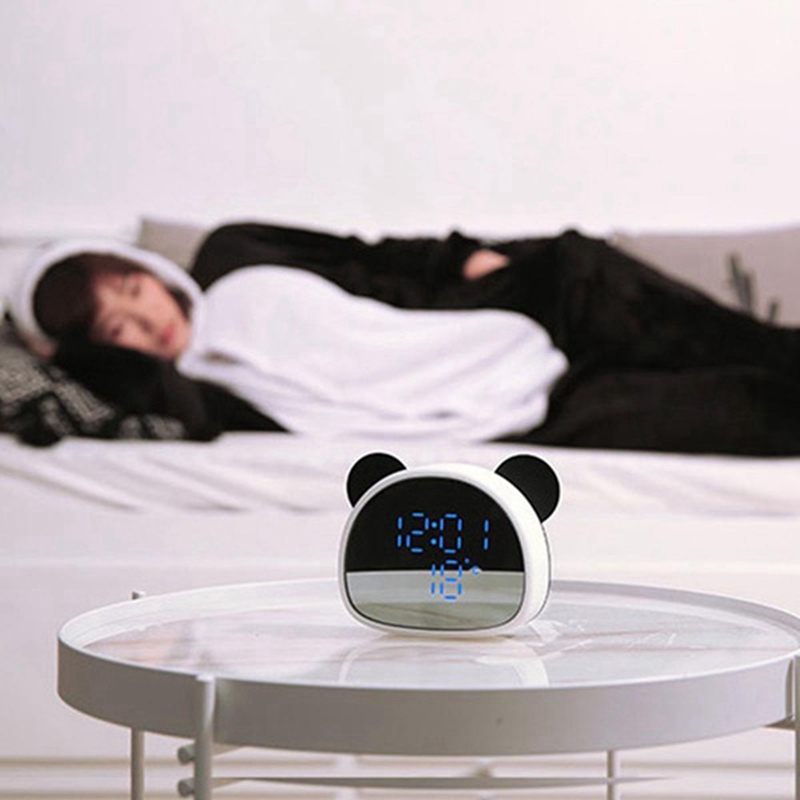 Электронный цифровой будильник Cartoon Panda Mirror Clock -White