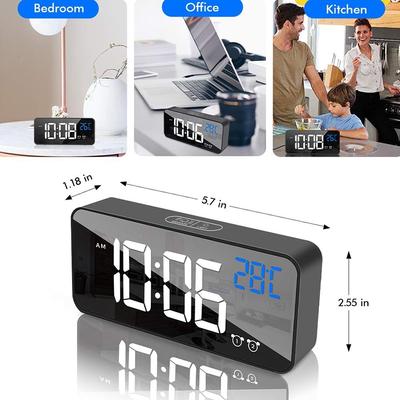 Цифровой светодиодный будильник с USB-портом для зарядки, 2 будильника (черный)