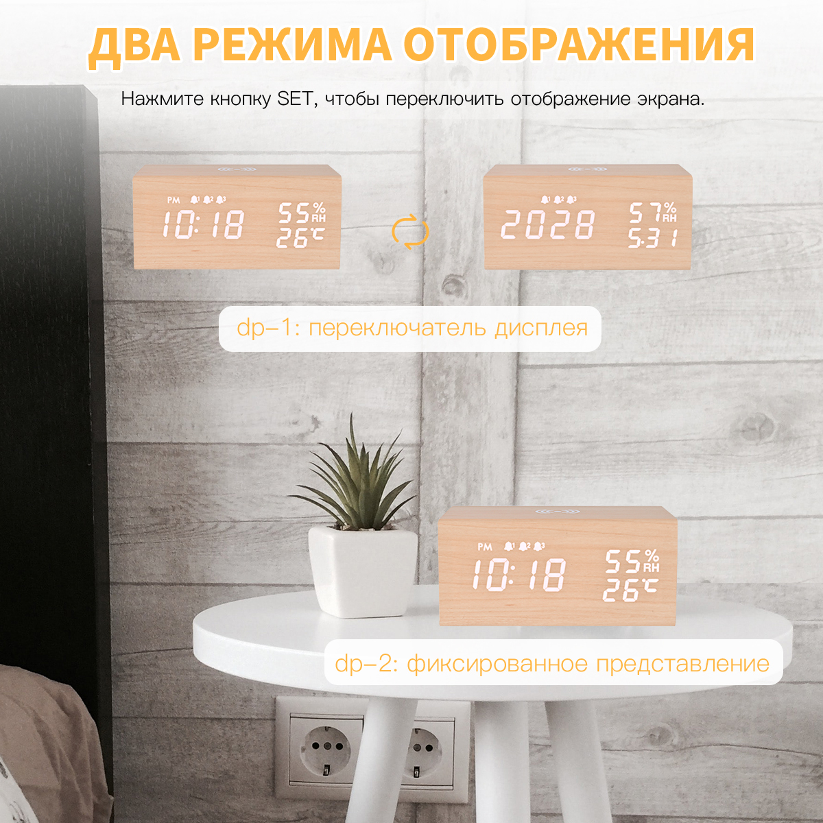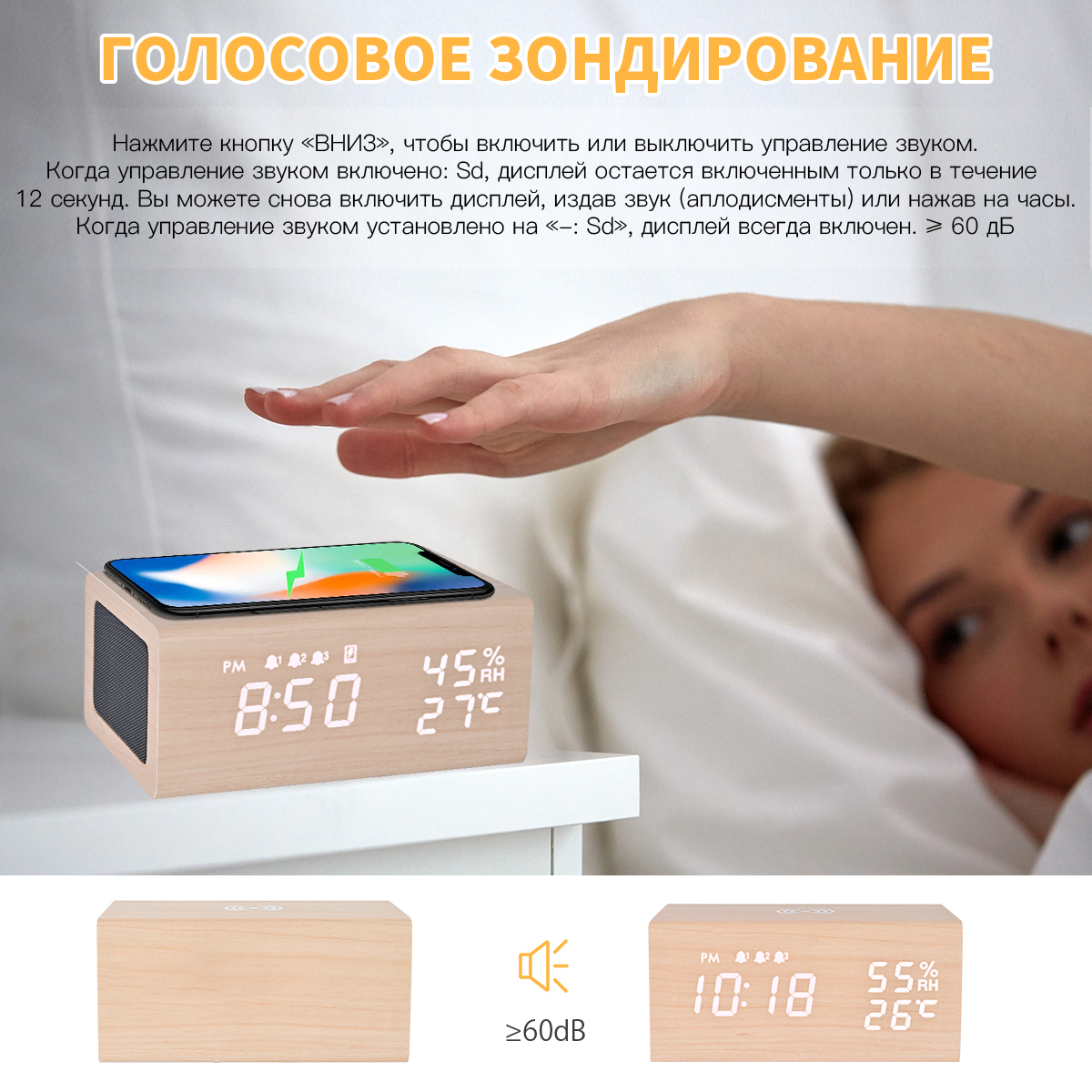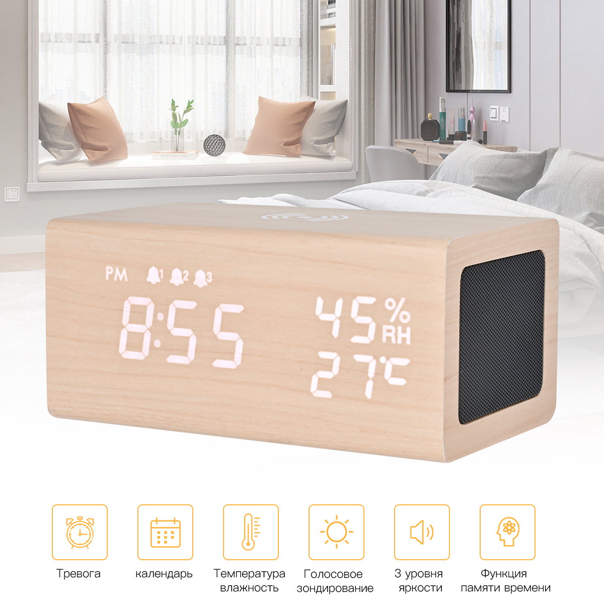 Цифровой будильник, Bluetooth-динамик с функцией беспроводной зарядки, функцией температуры и влажности