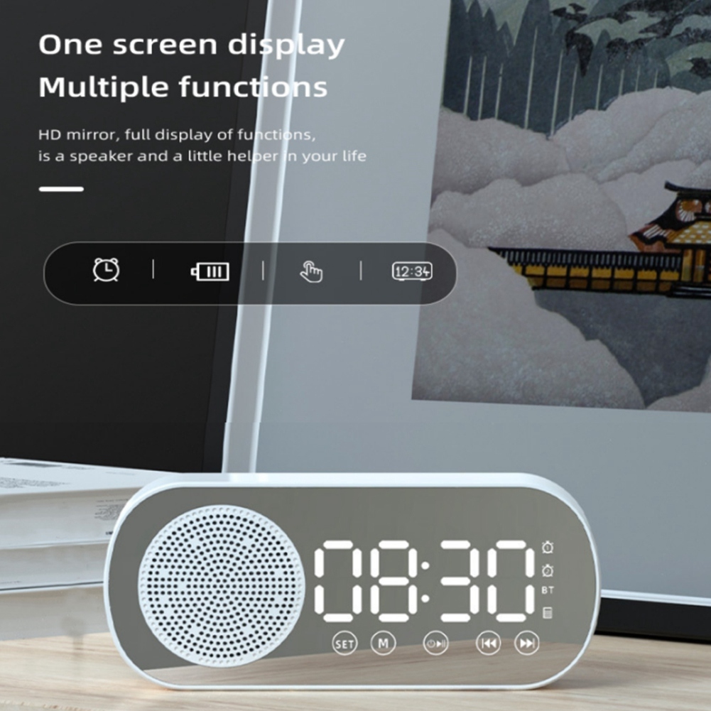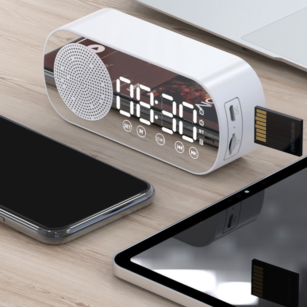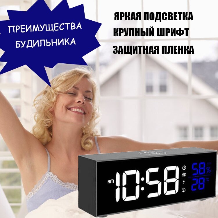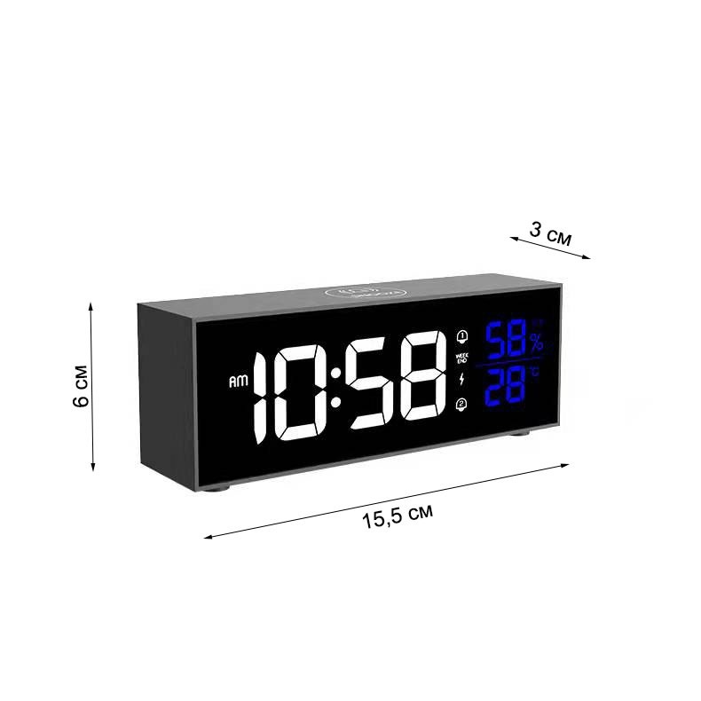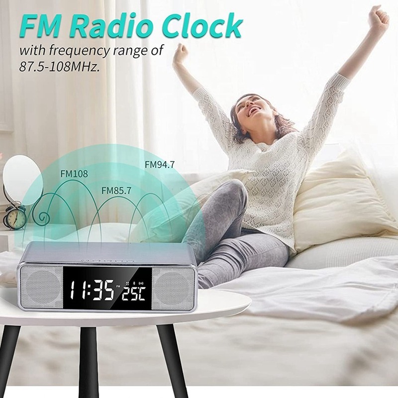 Часы будильник с быстрой беспроводной зарядкой телефона, BT, динамик и FM радио