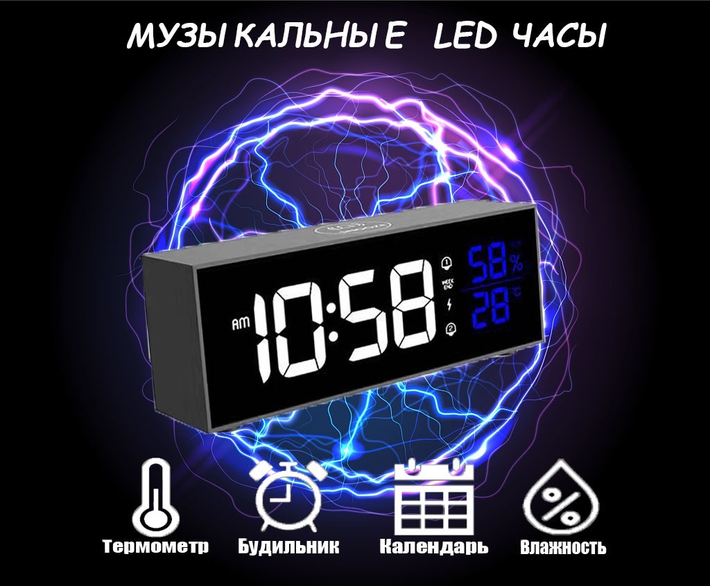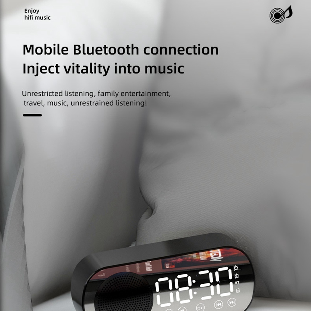 Светодиодный будильник для динамика Bluetooth, FM-радио, семейный (черный)