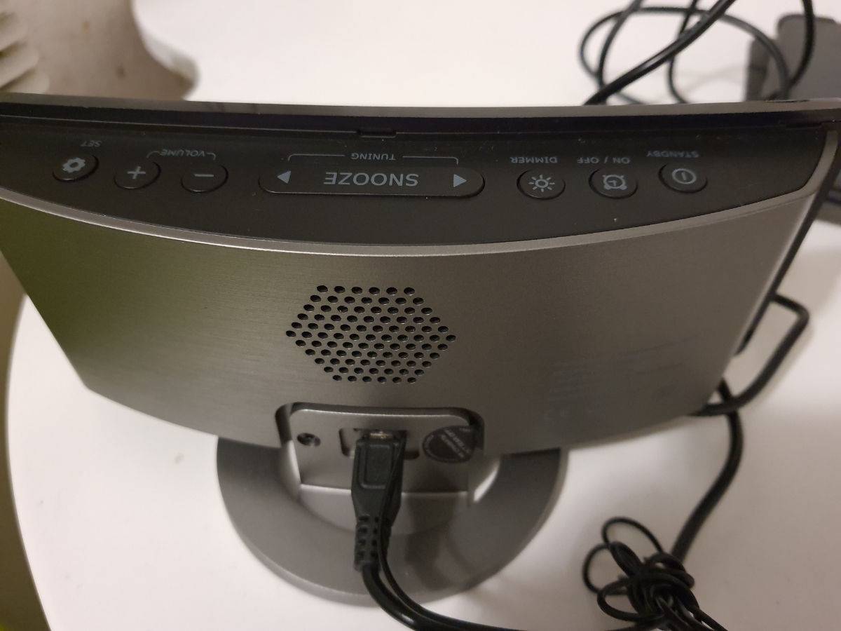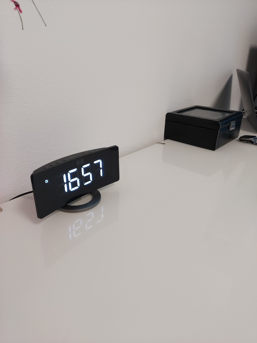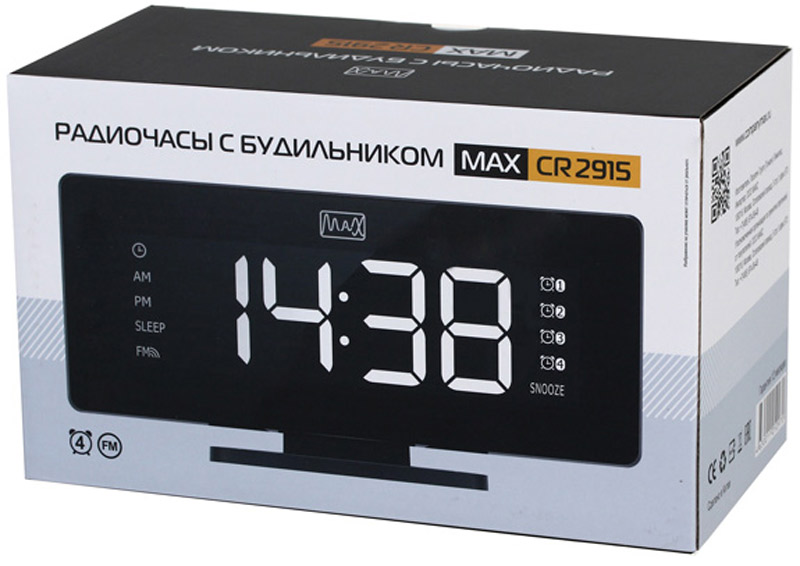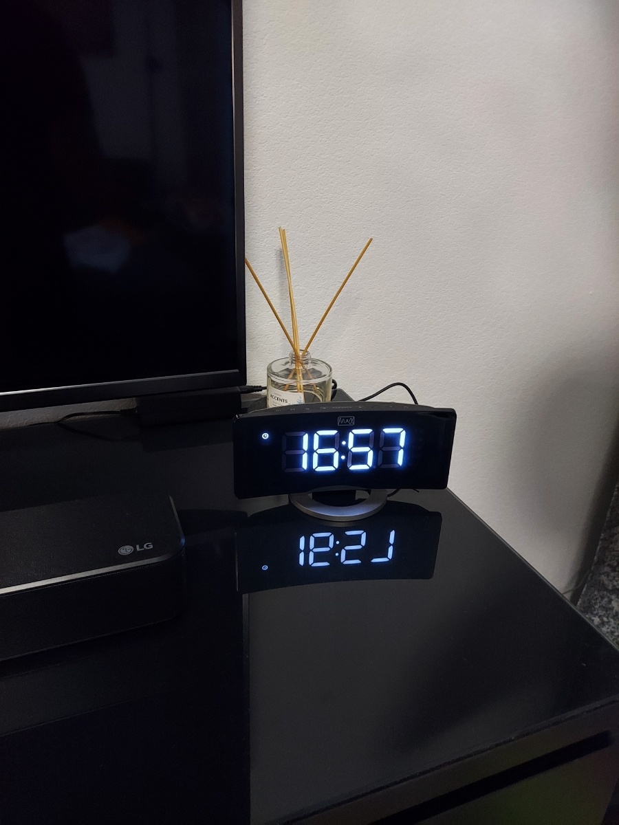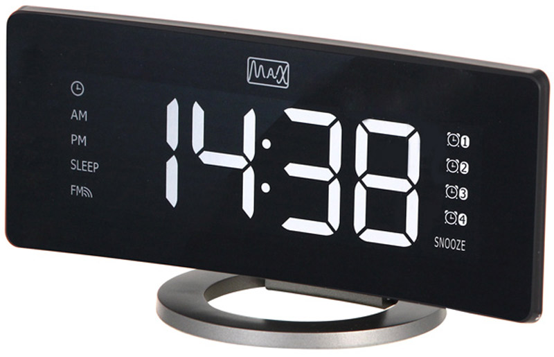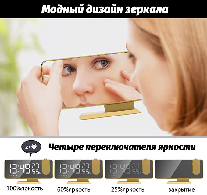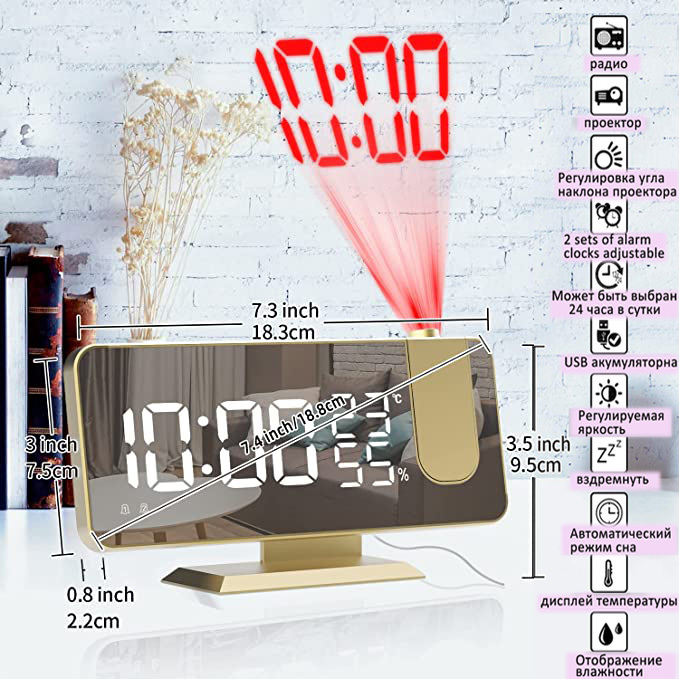Электронные часы отображают температуру и влажность, радио можно проецировать в черном и синем цвете
