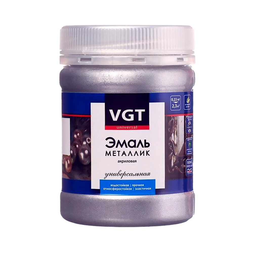 Эмаль универсальная Металлик Серебро ВГТ 0,23кг, 0.23 кг, серебристый
